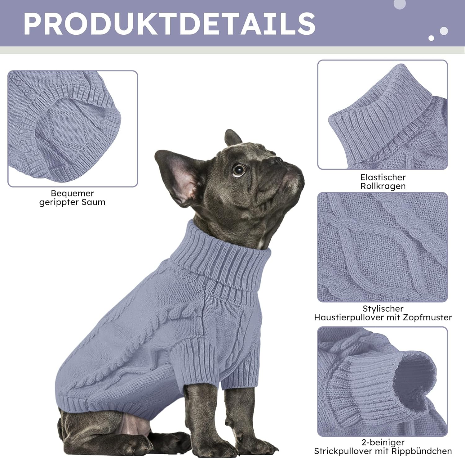 Пуловер за кучета Queenmore, пуловер за малки кучета, пуловер за кучета с плетена яка за дакел, пуловер с плетена яка, зимен пуловер за кучета, котки, булдог, чихуахуа