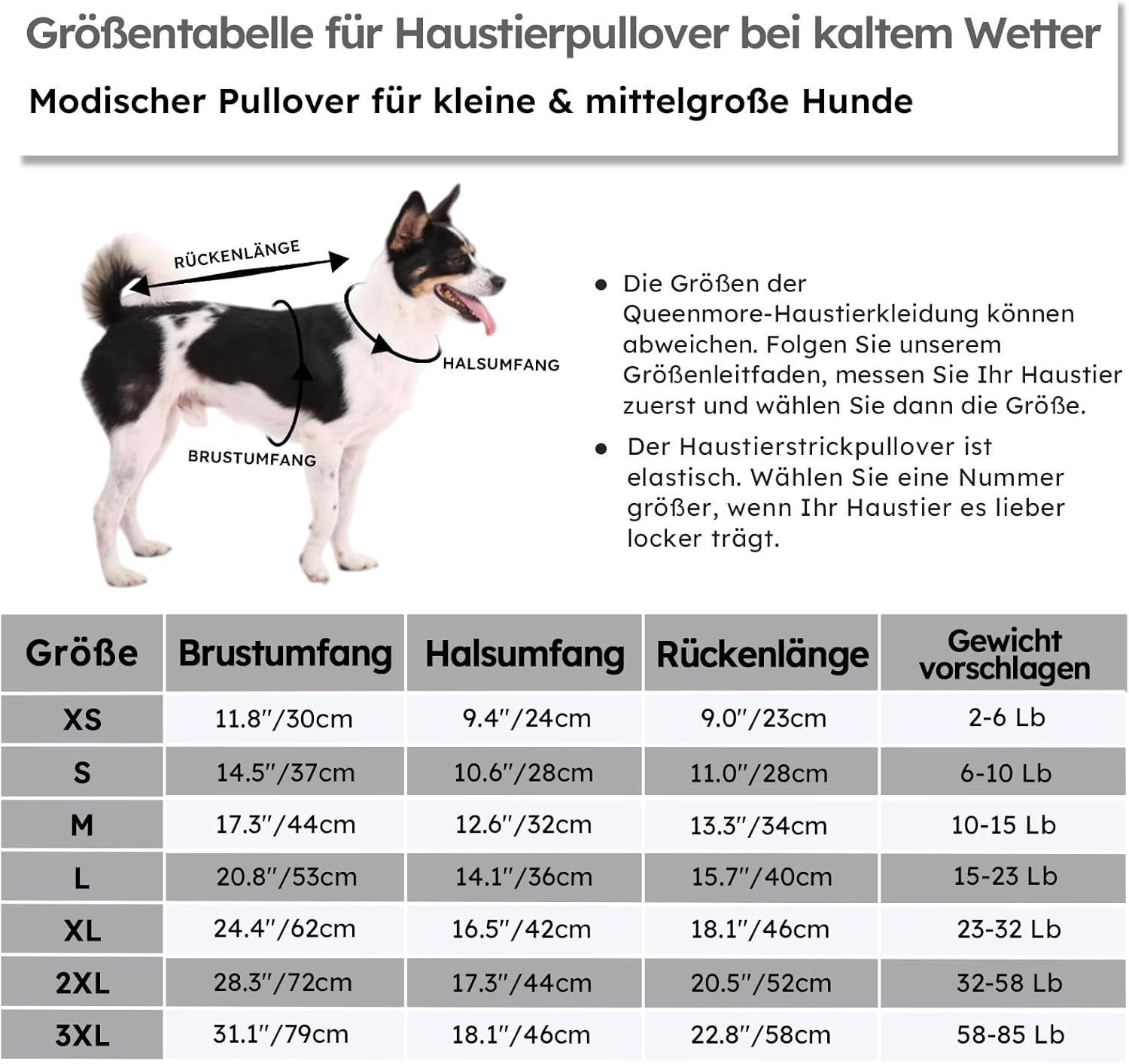• Гушкав и еластичен пуловер за кучета: Този коледен пуловер за кучета осигурява максимален комфорт и топлина за малки и средни по размер четириноги приятели. Изработен от акрилна прежда с висока плътност, която е еластична, мека и топла, пуловерът за кучета се адаптира към формата на тялото на вашето куче и осигурява свобода на движение. Перфектен като плетен зимен пуловер за малки кучета.