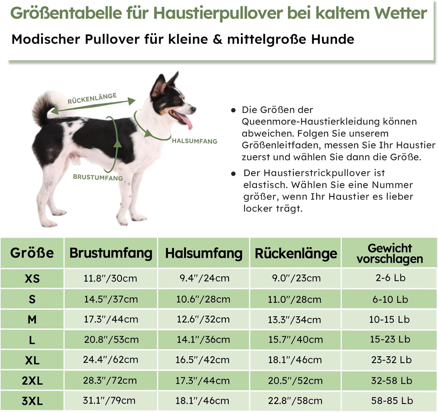• Гушкав и еластичен пуловер за кучета: Този коледен пуловер за кучета осигурява максимален комфорт и топлина за малки и средни по размер четириноги приятели. Изработен от акрилна прежда с висока плътност, която е еластична, мека и топла, пуловерът за кучета се адаптира към формата на тялото на вашето куче и осигурява свобода на движение. Перфектен като плетен зимен пуловер за малки кучета.