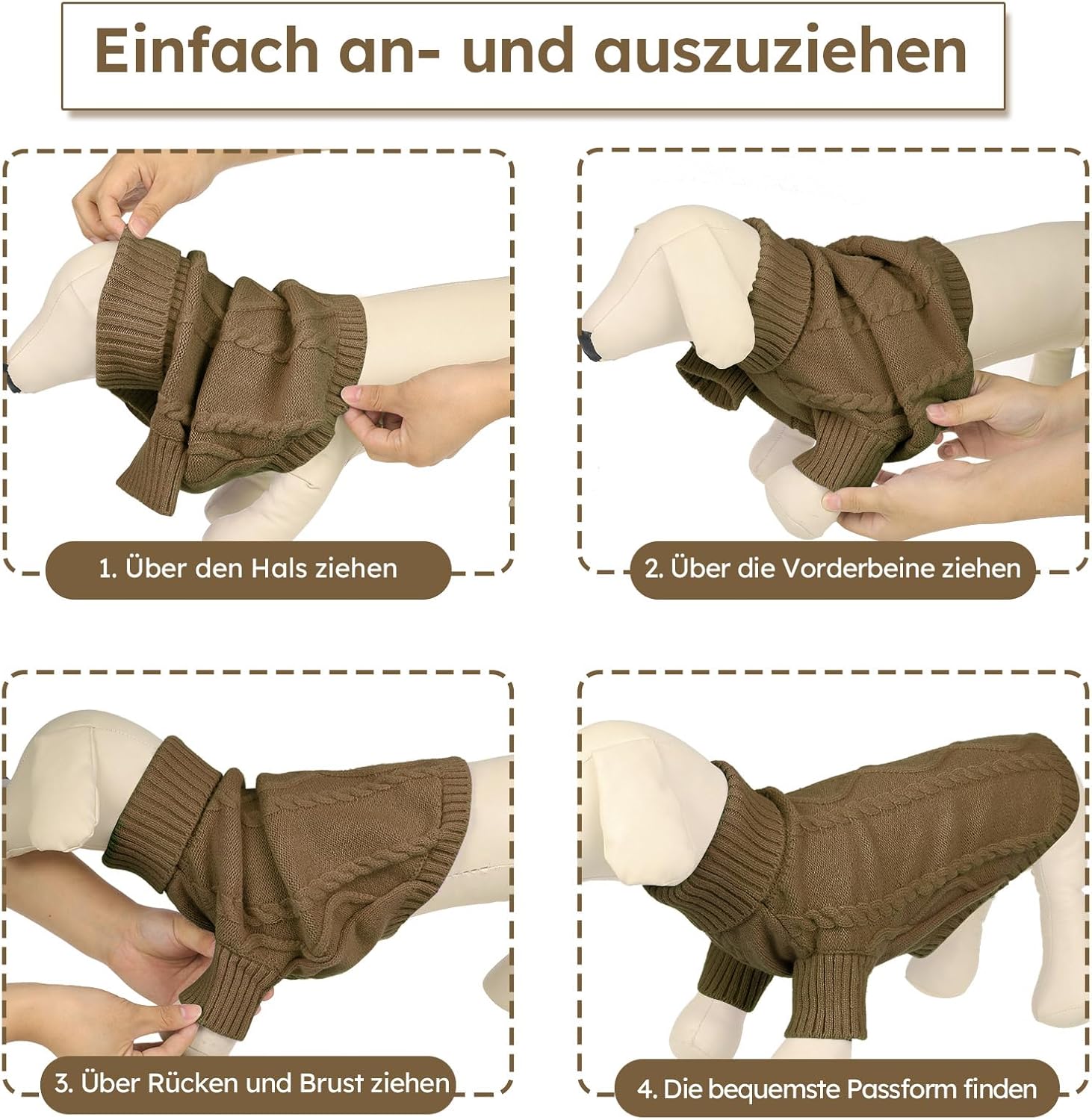 • Универсален: Независимо дали се използва като пуловер за малки или средни кучета, този зимен пуловер е подходящ за различни породи и размери. Плетена пуловер за кучета за всички поводи. Предлага се в различни цветове, подходящи както за мъжки, така и за женски кучета. Подходящ е и като пуловер за котка.