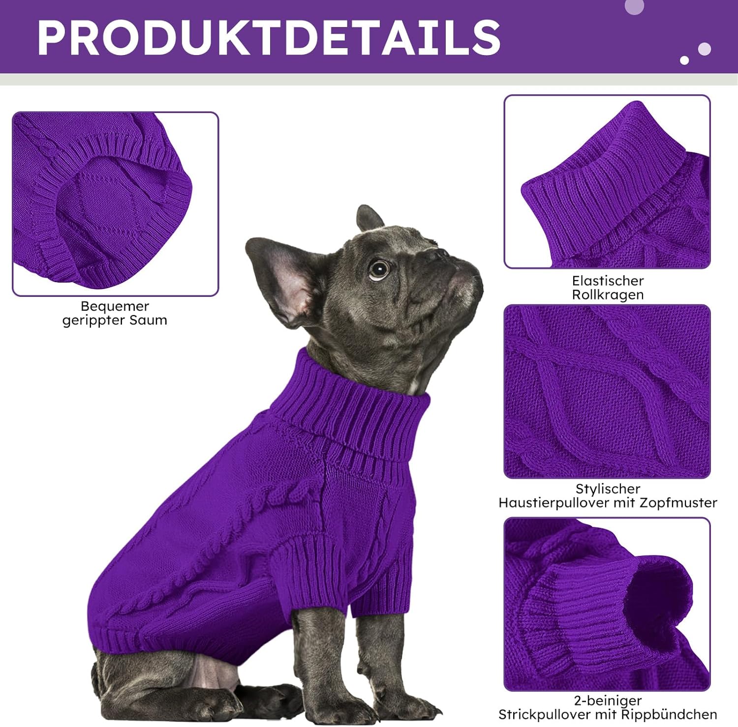 Пуловер за кучета Queenmore за големи кучета, топъл пуловер за кучета с дакел, плетено палто с плетена материя, пуловер за кучета, френски булдог, булдог, чихуахуа, котки корги, лилав, XL