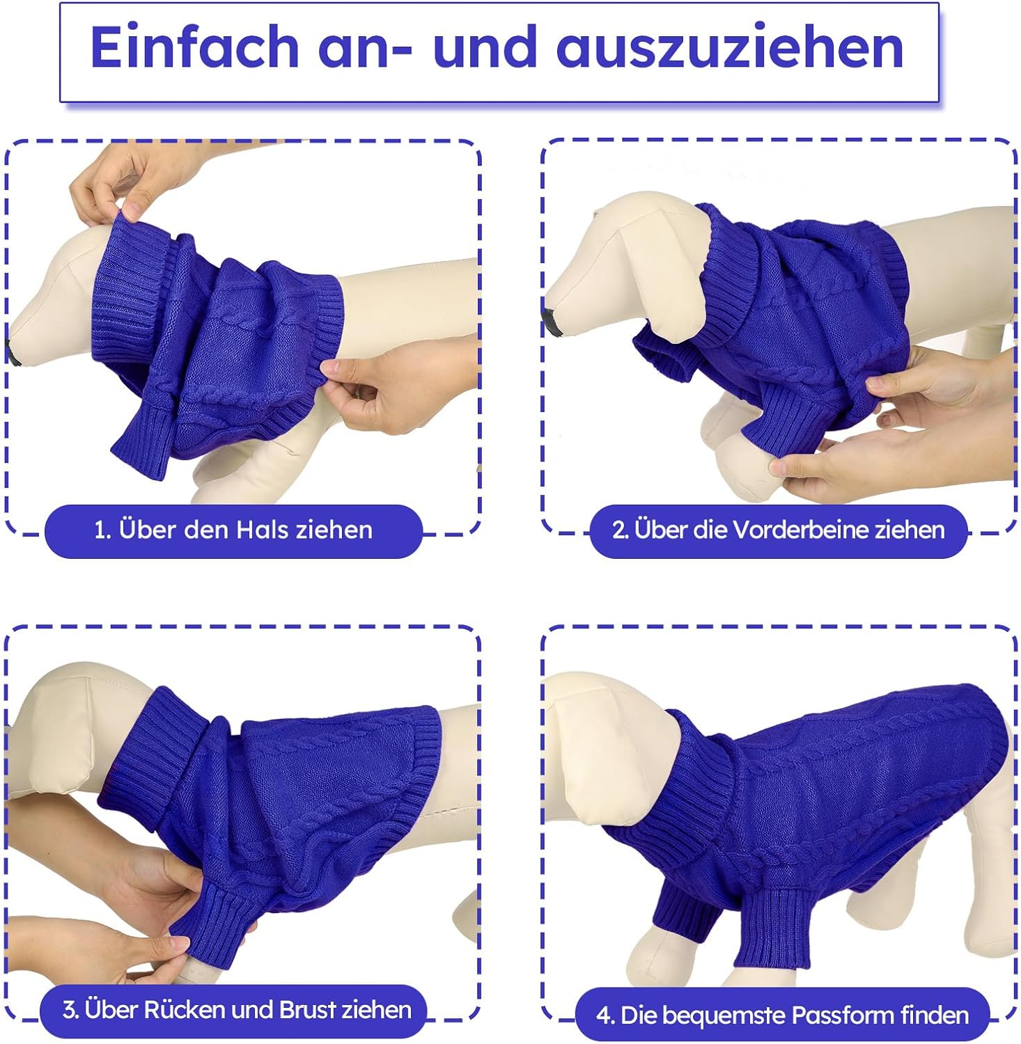 • Универсален: Независимо дали се използва като пуловер за малки или средни кучета, този зимен пуловер е подходящ за различни породи и размери. Плетена пуловер за кучета за всички поводи. Предлага се в различни цветове, подходящи както за мъжки, така и за женски кучета. Подходящ е и като пуловер за котка.