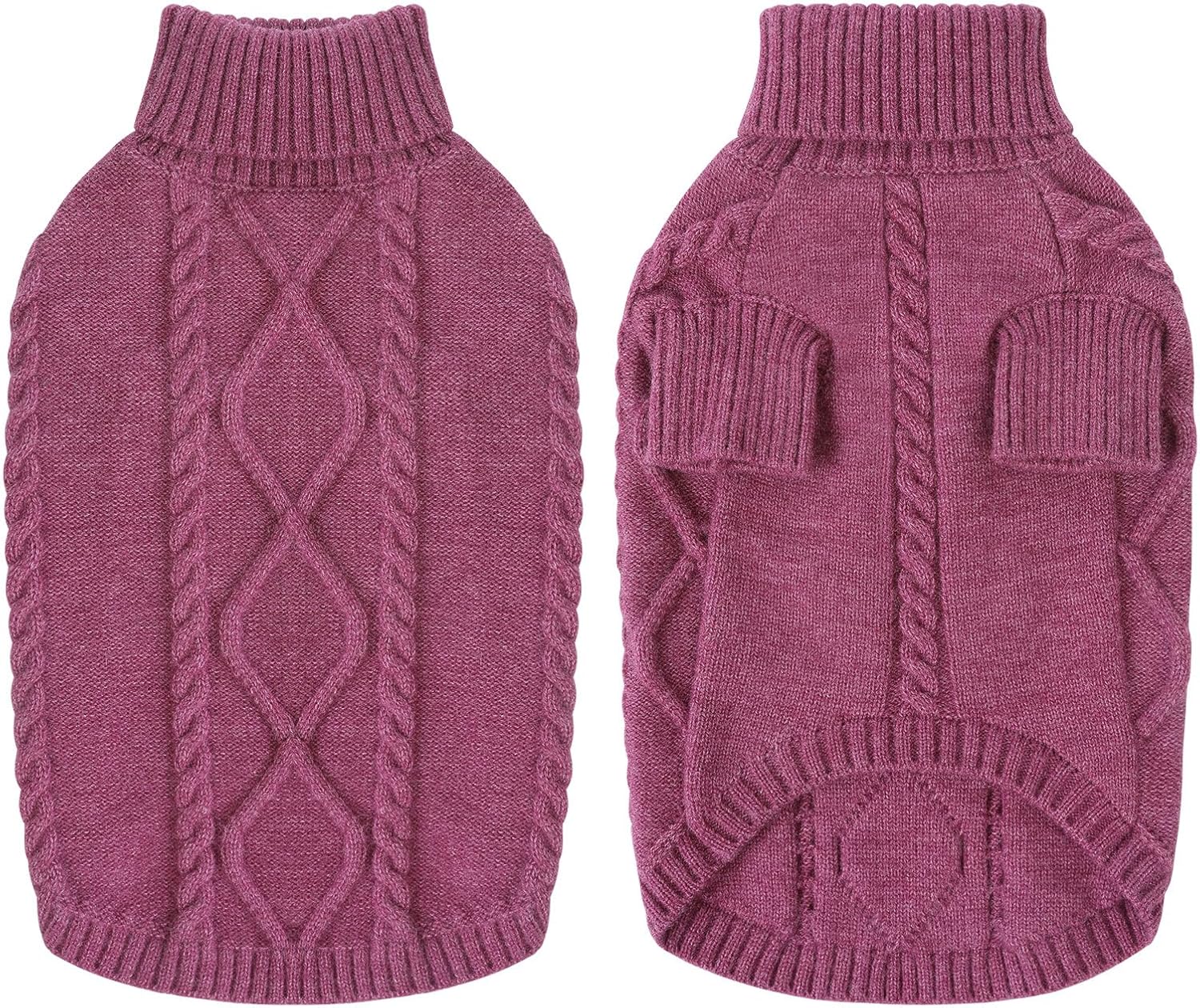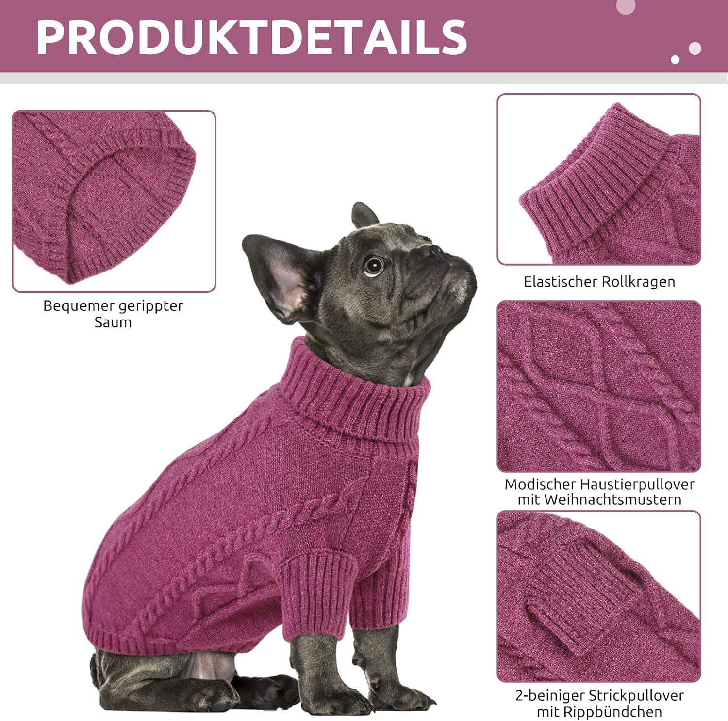 Пуловер за кучета Queenmore за малки кучета, топъл, пуловер за кучета тип дакел, плетено палто за кучета с плетка, унисекс за мъже и жени, цвят слива, размер S