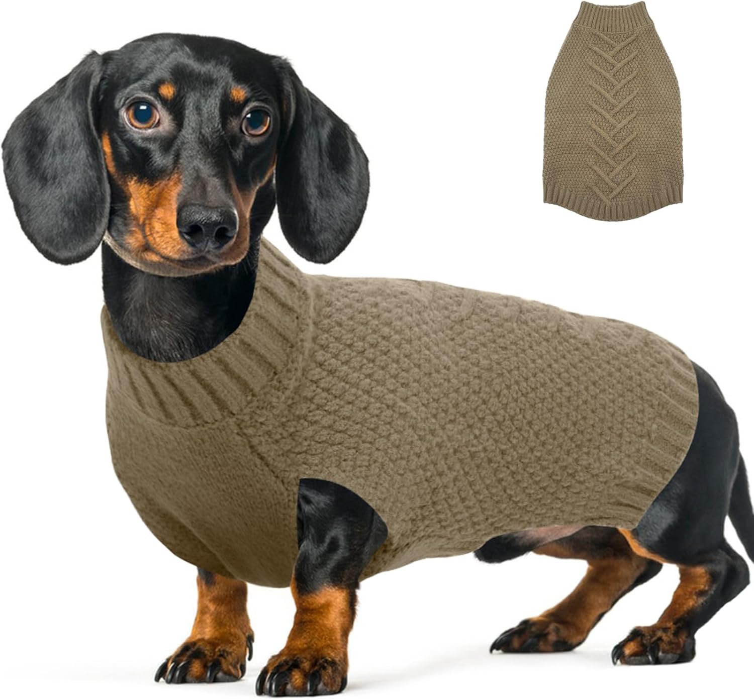 Пуловер за кучета за средни кучета, топъл плетен пуловер за дакел, поларен пуловер за френски булдог дакел, дръжте домашния си любимец топъл в студено време, сив, размер M