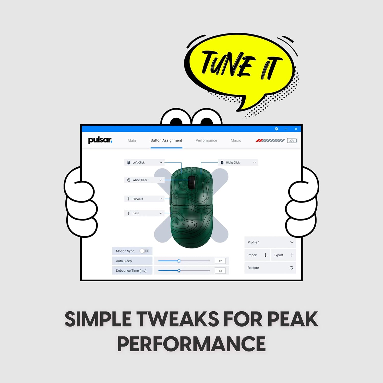• Флагмански сензор XS-1 Сензорът XS-1, ексклузивен за Pulsar, разполага с впечатляващите 32 000 DPI, скорост на проследяване 750 IPS и ускорение от 50g, осигурявайки несравнима прецизност и скорост.