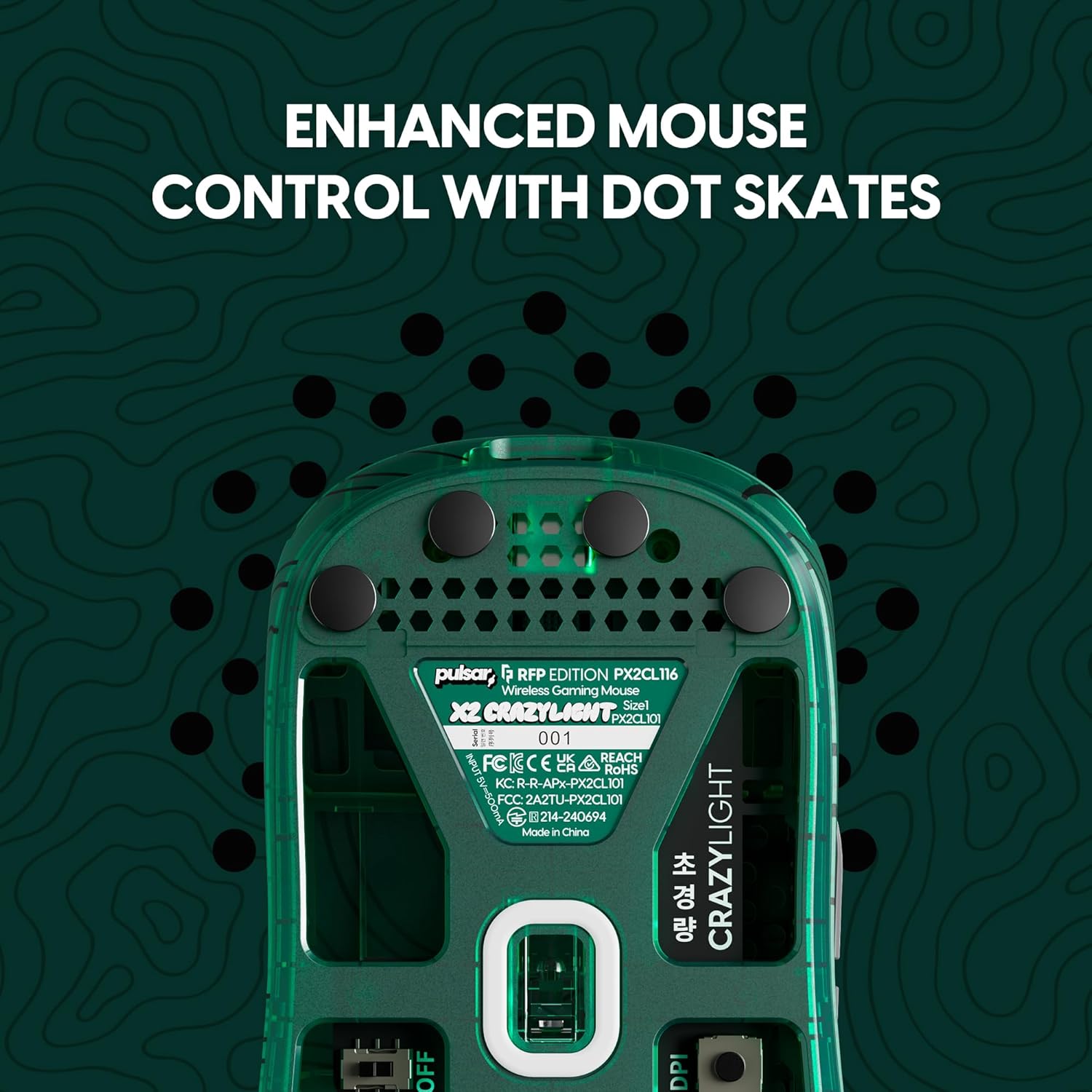 • Подобрено управление на мишката с точкови кънки - Оборудвани с включените точкови кънки Pulsar (16 UHMW-PE части, 6,6 мм), тези кънки предлагат изключително ниско триене за плавно плъзгане, подобрявайки както скоростта, така и прецизността върху всякаква повърхност. Създадени за издръжливост, те са устойчиви на износване и осигуряват постоянна производителност дори при продължителна употреба. Идеални за стъклени и твърди подложки за мишка, те са изработени, за да отговорят на изискванията на най-взискателните потребители.