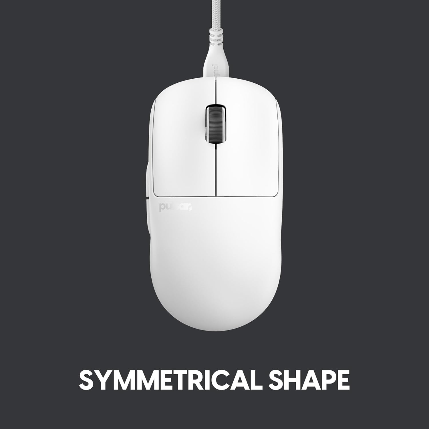 • Симетрична форма, отлична производителност - Проектирана с ултралека структура, тя се отличава с плоска, широка симетрична форма, която поддържа както дръжките тип „нокът“, така и дръжките тип „пръст“. Дръжката тип „нокът“ осигурява стабилен захват, докато дръжката тип „пръст“ минимизира движението на китката и позволява бързи реакции и прецизен контрол. И двата стила на ръкохватка предлагат изключителна отзивчивост и точност, осигурявайки оптимален контрол, съобразен с вашите уникални предпочитания за захват.