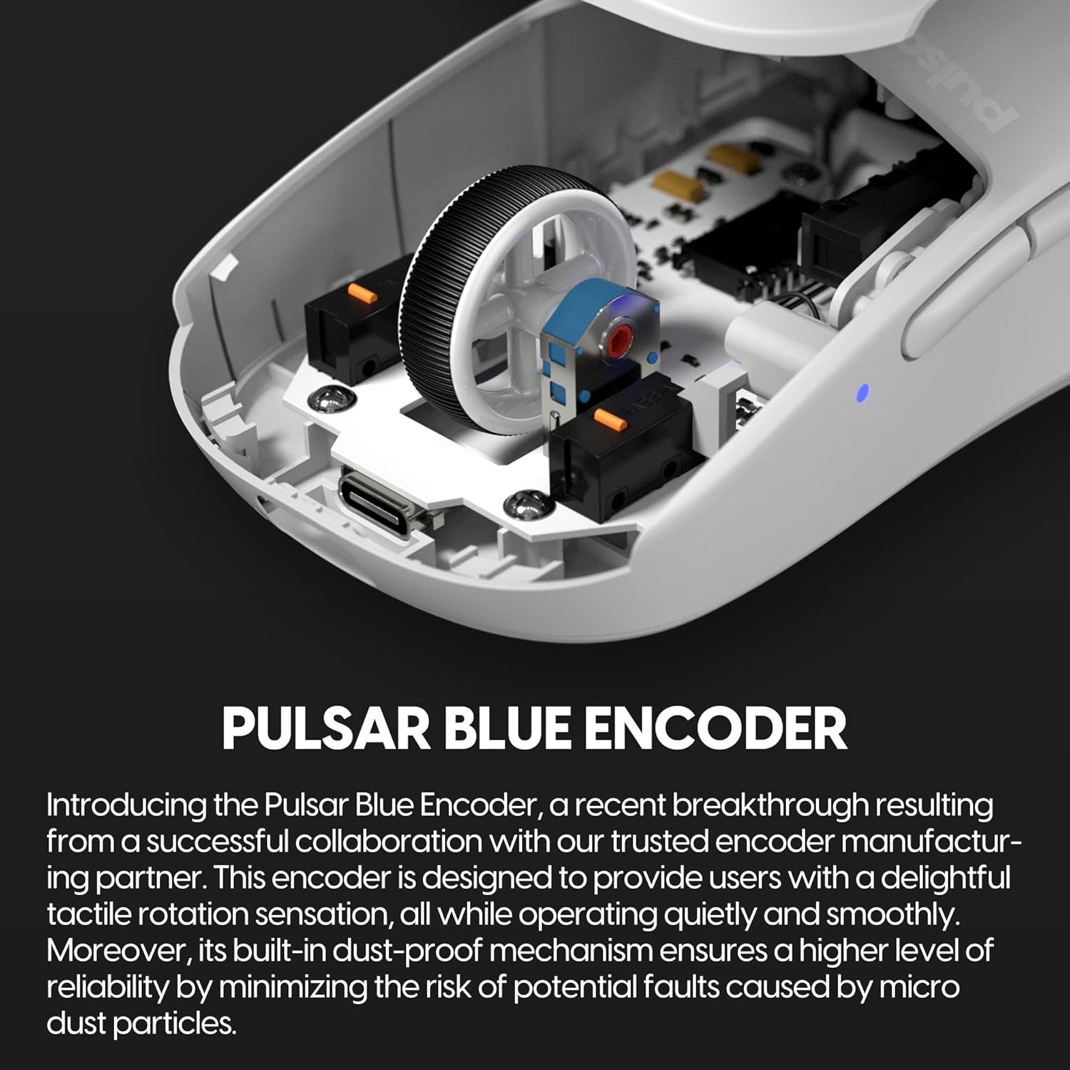 • Светлинна скорост: Минимизирайки вероятността от неволно двойно щракване, тези превключватели осигуряват бърза и прецизна реакция. В комбинация с Pulsar Blue Encoder, който осигурява приятно тактилно изживяване при въртене, всичко това в прахоустойчива конструкция.