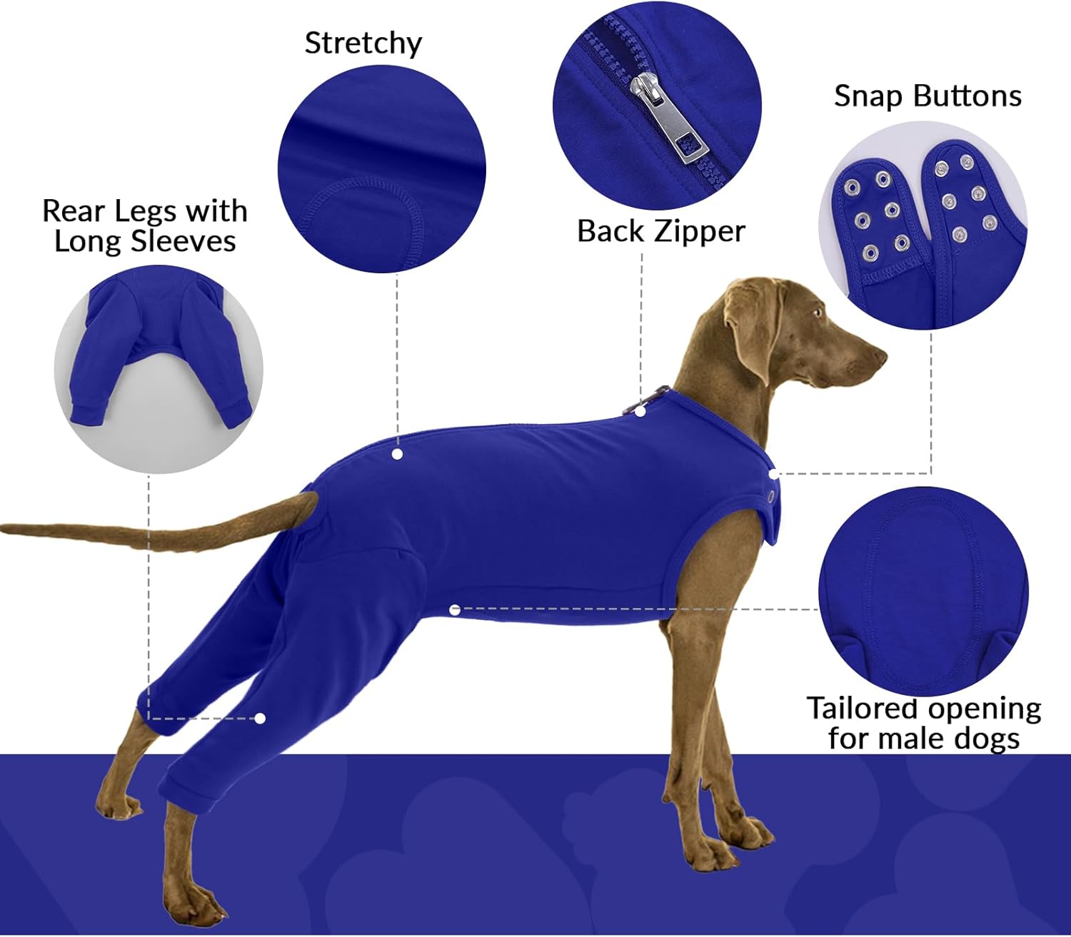 PUMYPOREITY Кучешки боди с крачета, мек боди против облизване за задни крака, дълго хирургично тяло за мъжки кучета, превръзка за задни крака, протектор за бедра за кучета (син, M)