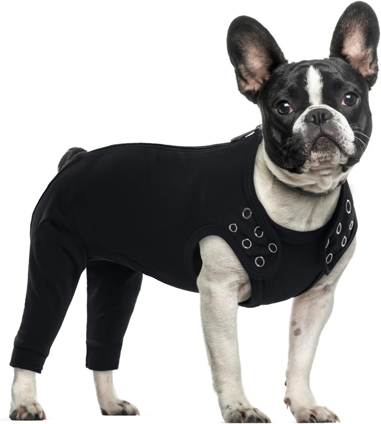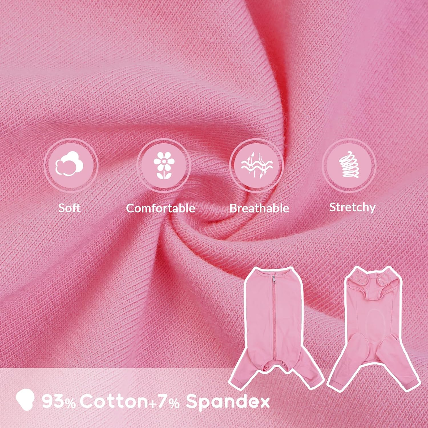 • Удобна и дишаща: Тази хирургическа престилка за кучета е изработена от 93% памук и 7% еластан, което я прави мека и нежна към чувствителни рани. Дишащият материал предотвратява облизването и осигурява оптимална циркулация на въздуха, като насърчава заздравяването и осигурява комфорт на вашето куче. Гащеризон за кучета за следоперативна употреба - подходящ за всеки сезон.