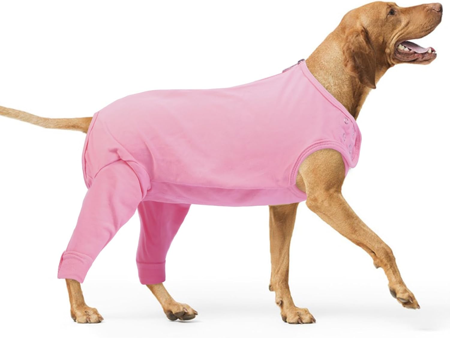PUMYPOREITY Кучешко боди с крака, меко боди против облизване, кучешко боди с дълга превръзка за крака за мъжки кучета, протектор за бедра (розово, M)