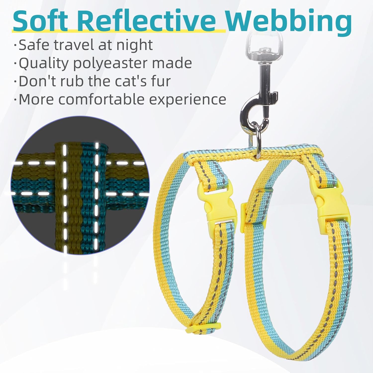 PUPTECK Жълто-син регулируем котешки хамут и каишка, предпазващ от бягство, за разходки и пътуване с котенца