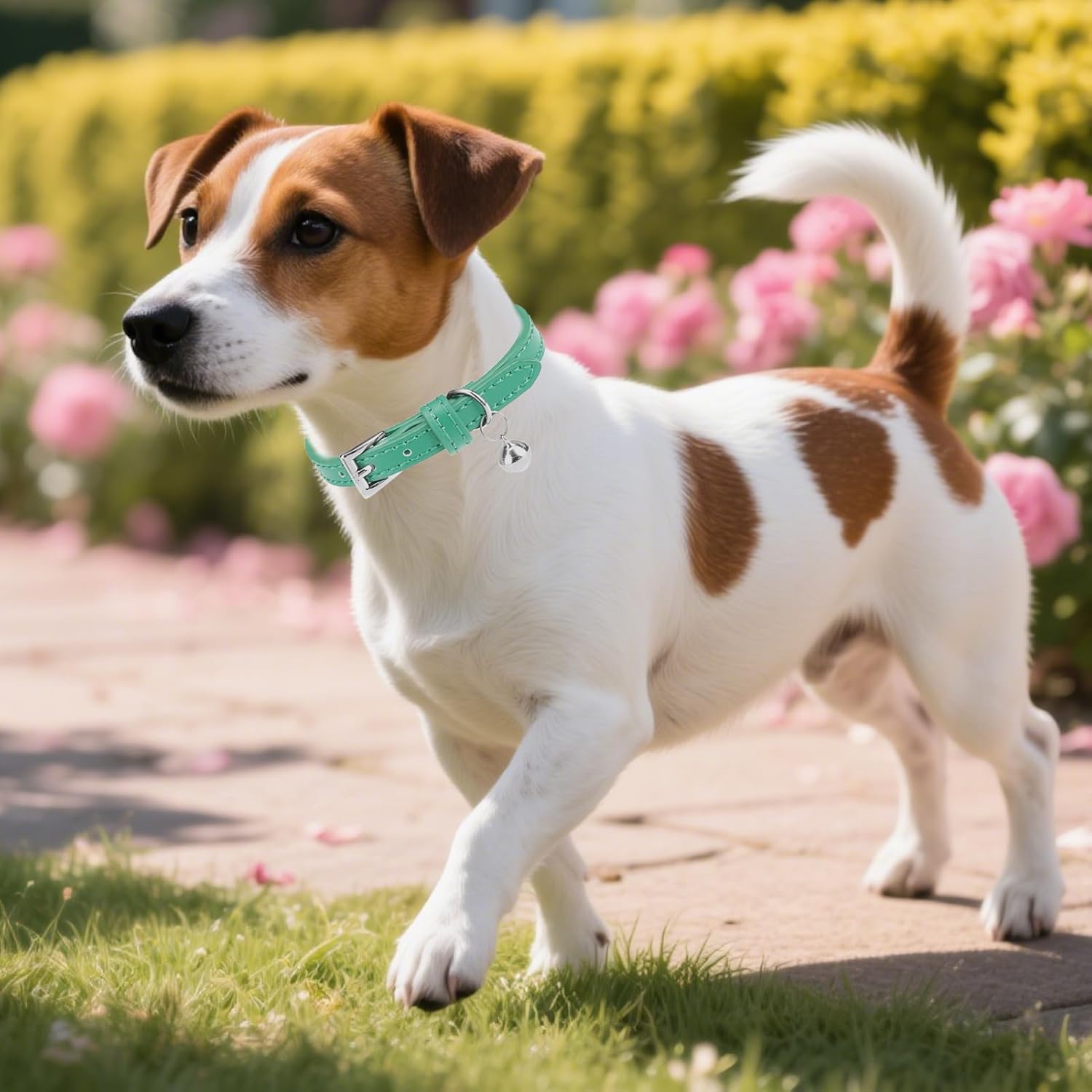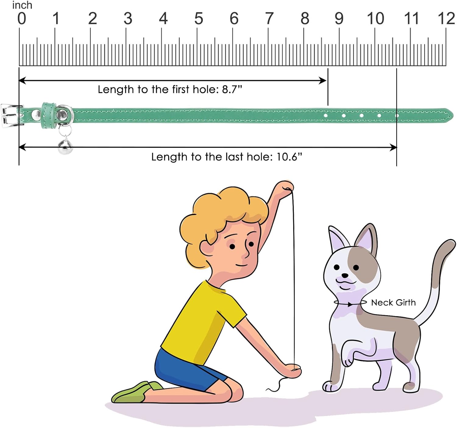 PUPTECK Комплект от 2 меки кожени нашийници за котки с регулируем звънец за момичета, момчета, котки, кученца, синьо-зелени