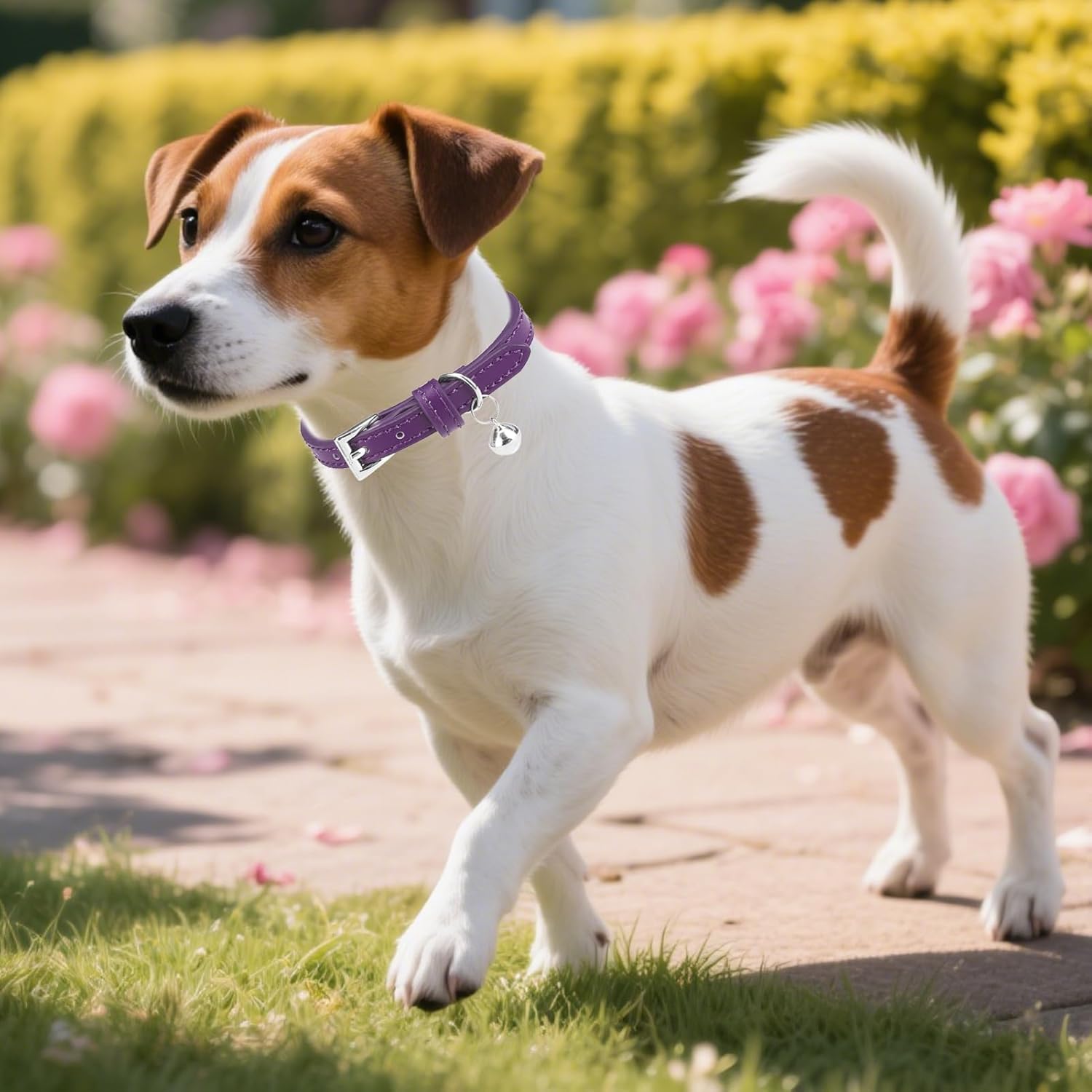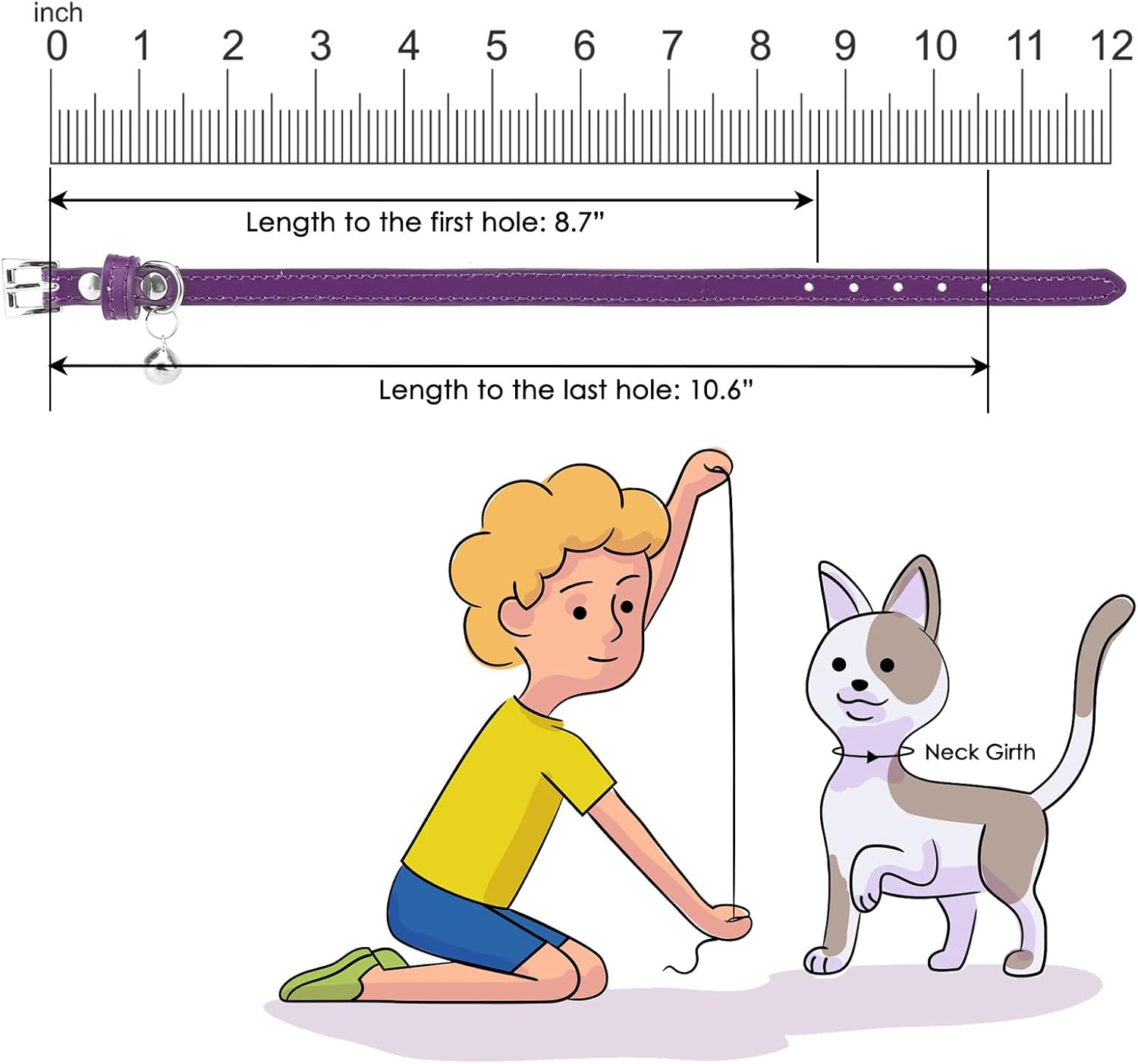 PUPTECK Комплект от 2 нашийника за котки със звънец, меки кожени, регулируеми за котки, котенца и кученца. Идеални за котенца или кученца, лилави