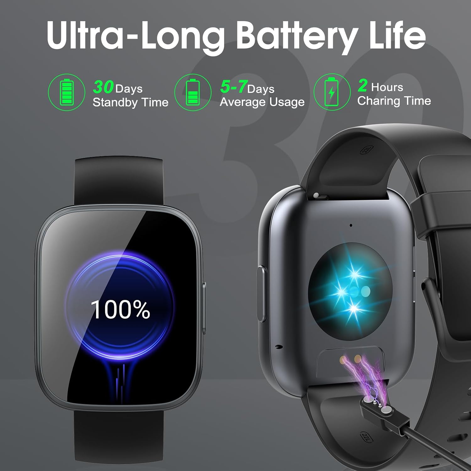 • 100+ спортни режима и водоустойчивост IP68: фитнес часовникът предлага над 100 спортни режима, поддържа бягане, колоездене, скачане, йога, футбол, баскетбол, туризъм и други дейности. Точно записва стъпки, пулс, разстояние. Водоустойчив е IP68 за потни, дъждовни или миене на ръце. Не е подходящ за плуване или среда с водна пара. Има много повече функции: показване на времето, управление на камерата, управление на музиката, търсене на телефон, хронометър и др.
