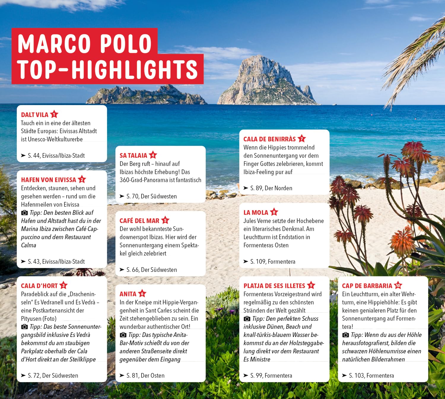Открийте всички аспекти на парти острова с пътеводителя MARCO POLO Ibiza & Formentera. Парти остров, хипи остров, остров на красивите и богатите – с това е известна Ибиса. Но Ибиса е много повече! Това е може би най-колоритният, разнообразен и космополитен остров в Европа. Пътеводителят MARCO POLO Ibiza & Formentera предлага най-добрите съвети за островна почивка, съобразена с вашия вкус!
