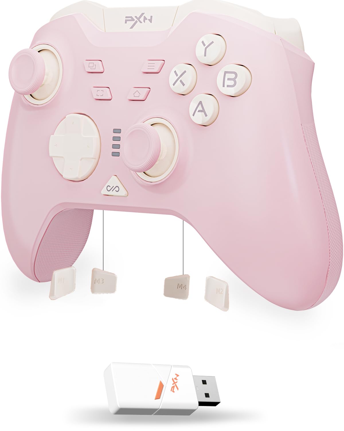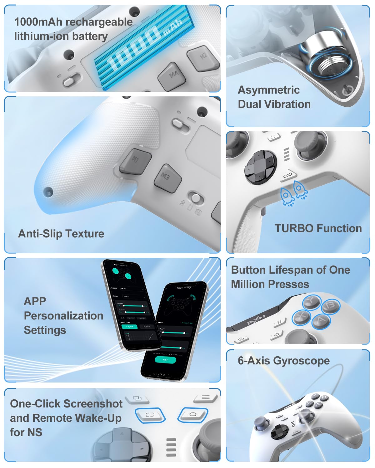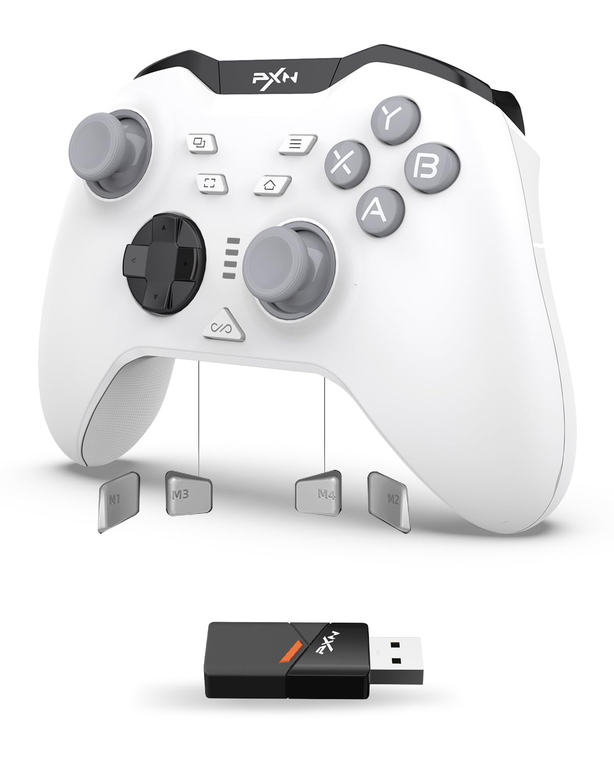 PXN P5 Безжичен геймърски контролер 2025 – Джойстик и спусък с ефект на Хол, честота на запитване 1000Hz, 4 макро клавиша, 2.4G/BT/SW, Turbo, приложение – Контролер за PC, Steam Deck, Switch, Android и iOS
