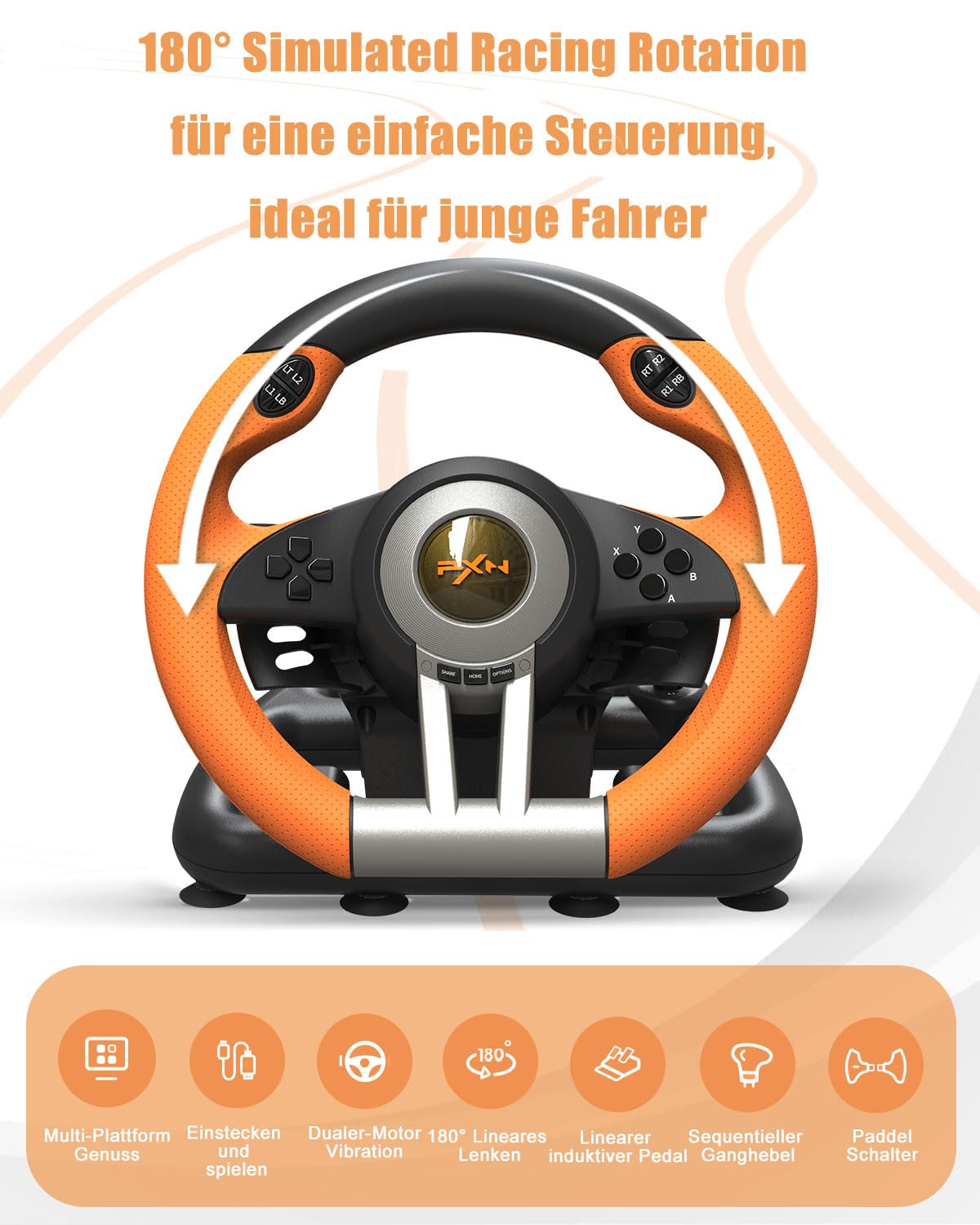 This racing wheel provides an unmatched racing experience and is compatible with XBOX ONE, Playstation 3, Playstation 4, Nintendo Switch and PC systems to ensure cross-compatibility with top racing games.