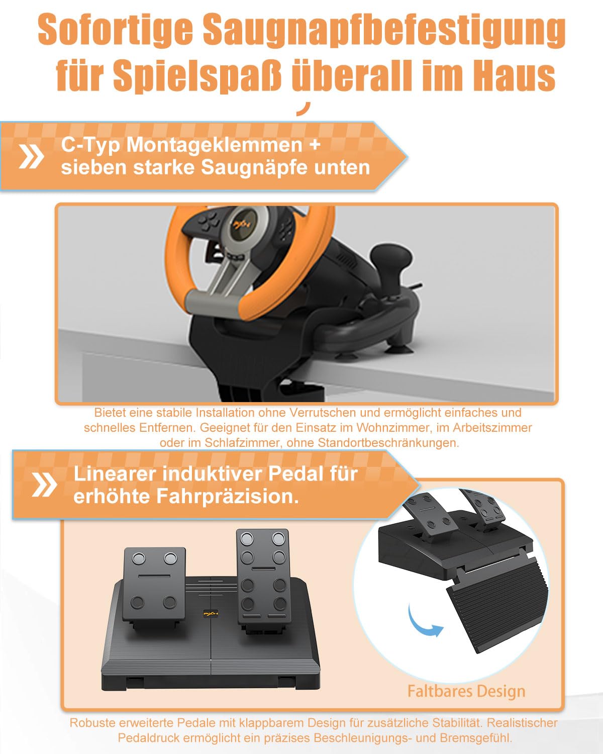 Package Includes | 1 x Steering wheel 1 x Foot pedal set 1 x User manual |
