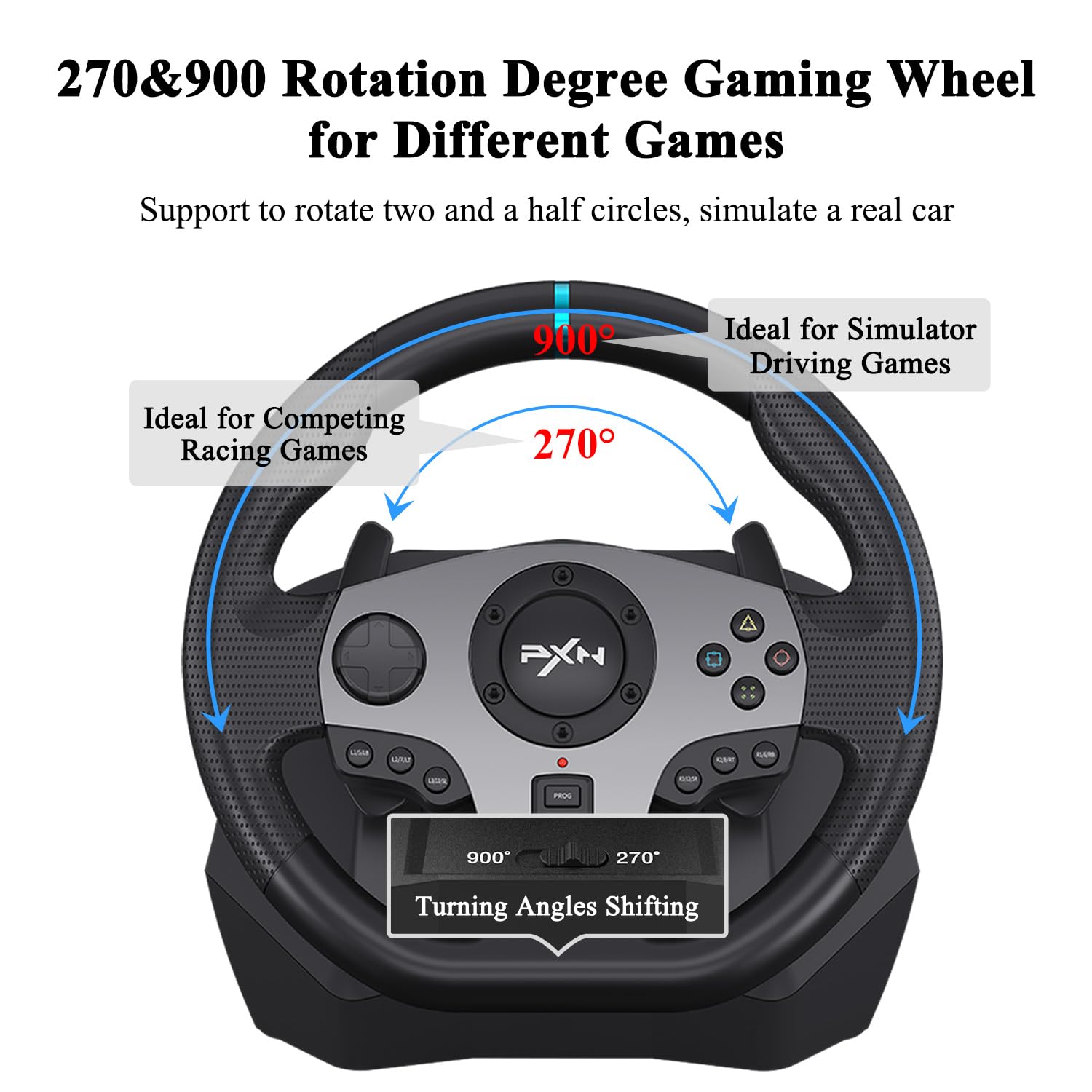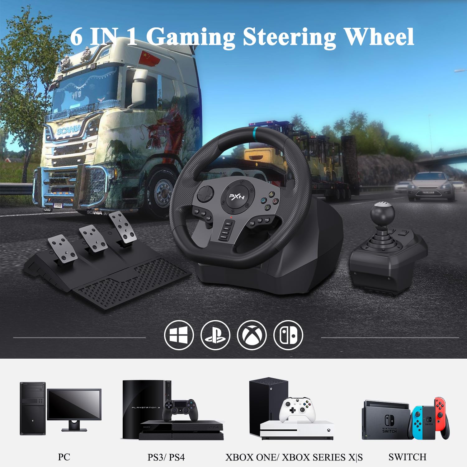 PXN V9 волан за компютър с педали и скоростен лост, 270/900 градуса геймърски волан за PS4 с вибрационна обратна връзка, волани за Xbox One, Xbox Series X/S, PS4, PS3, PC, NS Switch, приложение за инструменти