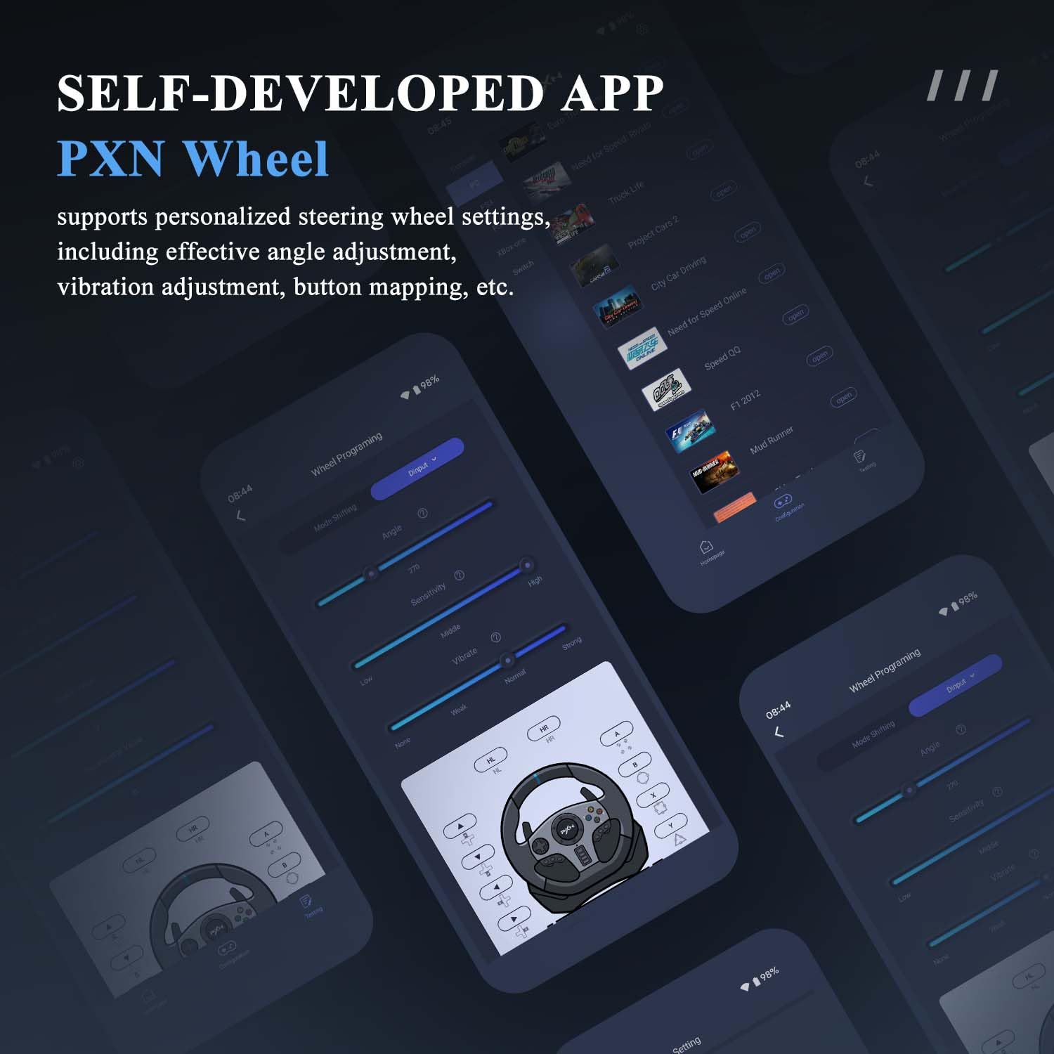 • Универсален съвместим волан: PXN V9 PC воланът с педали и скорости е лесен за настройване, може да работи с повечето състезателни игри на PC, PS3, PS4, Xbox One, Xbox Series X/S, NS Switch, Windows 7/8/10/11 система, поддържа plug and play на PC. Мобилното приложение - PXN Wheel app е предназначено за персонализирани гейминг волани за PS4 и настройки на играта, заредете го за пълноценно изживяване и го управлявайте както желаете.