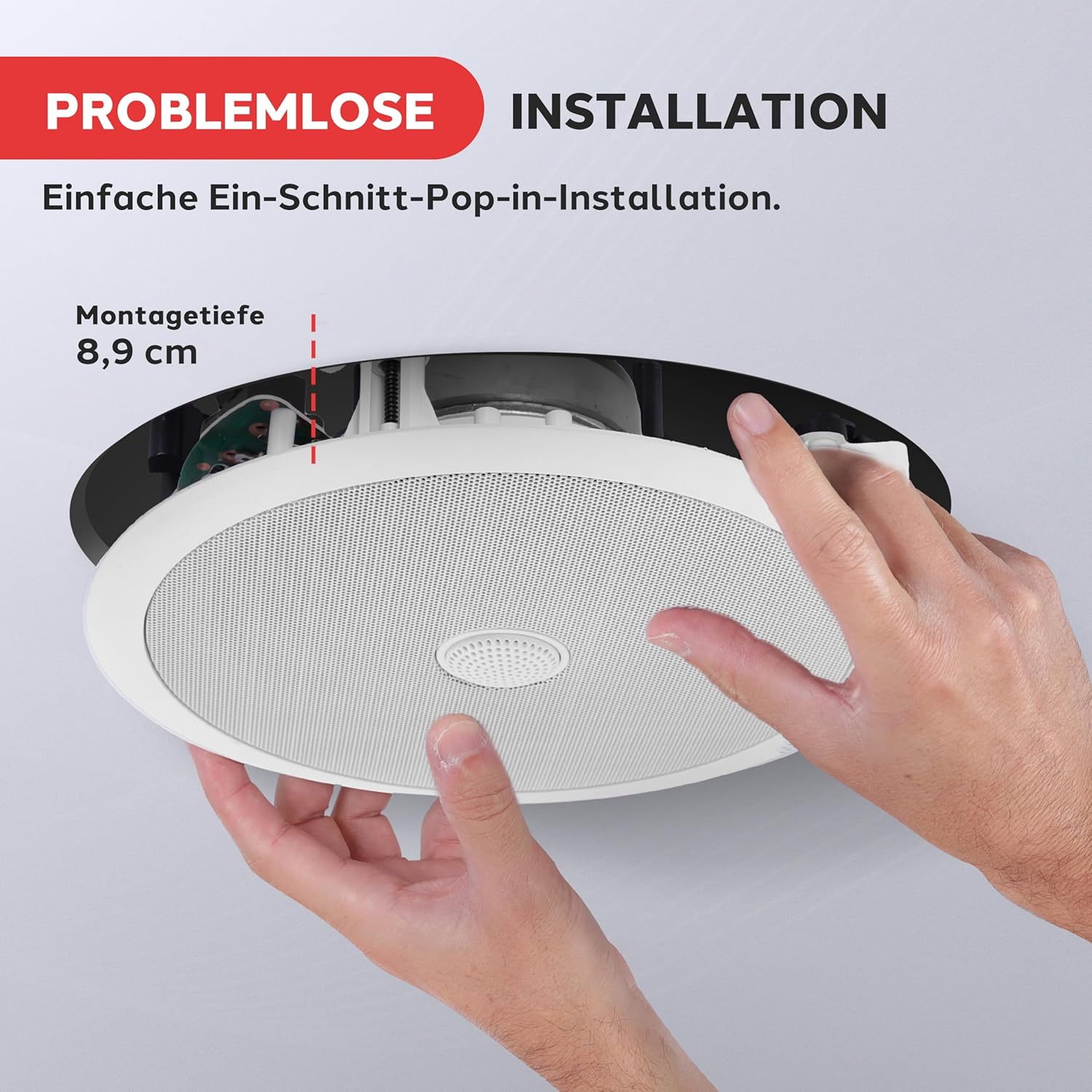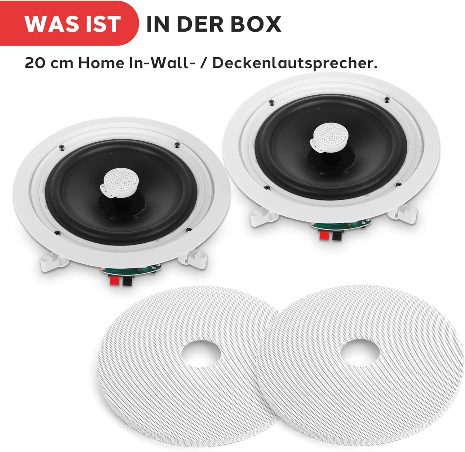 • ДВУПОСОЧЕН МОНТАЖ НА ВИСОКОГОВОРИТЕЛ: Двата 8-инчови стерео високоговорителя могат да бъдат монтирани по два начина: вграден монтаж или монтаж на таван. Разполагат с удобни конектори за високоговорители, които позволяват бързо и безпроблемно свързване към кабелите на високоговорителите по време на персонализирани инсталации.