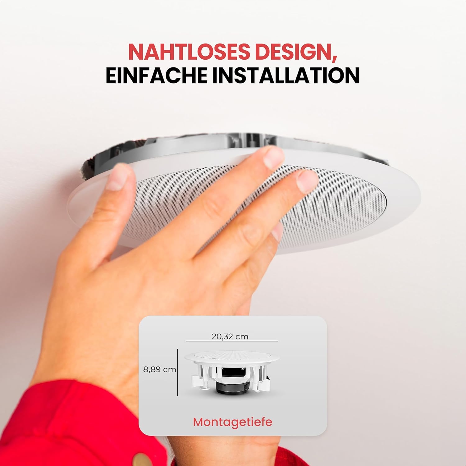 • ДВУПОСОЧЕН МОНТАЖ НА ВИСОКОГОВОРИТЕЛ: Двата 8-инчови стерео високоговорителя могат да бъдат монтирани по два начина: вграден монтаж или монтаж на таван. Разполагат с удобни конектори за високоговорители, които позволяват бързо и безпроблемно свързване към кабелите на високоговорителите по време на персонализирани инсталации.
