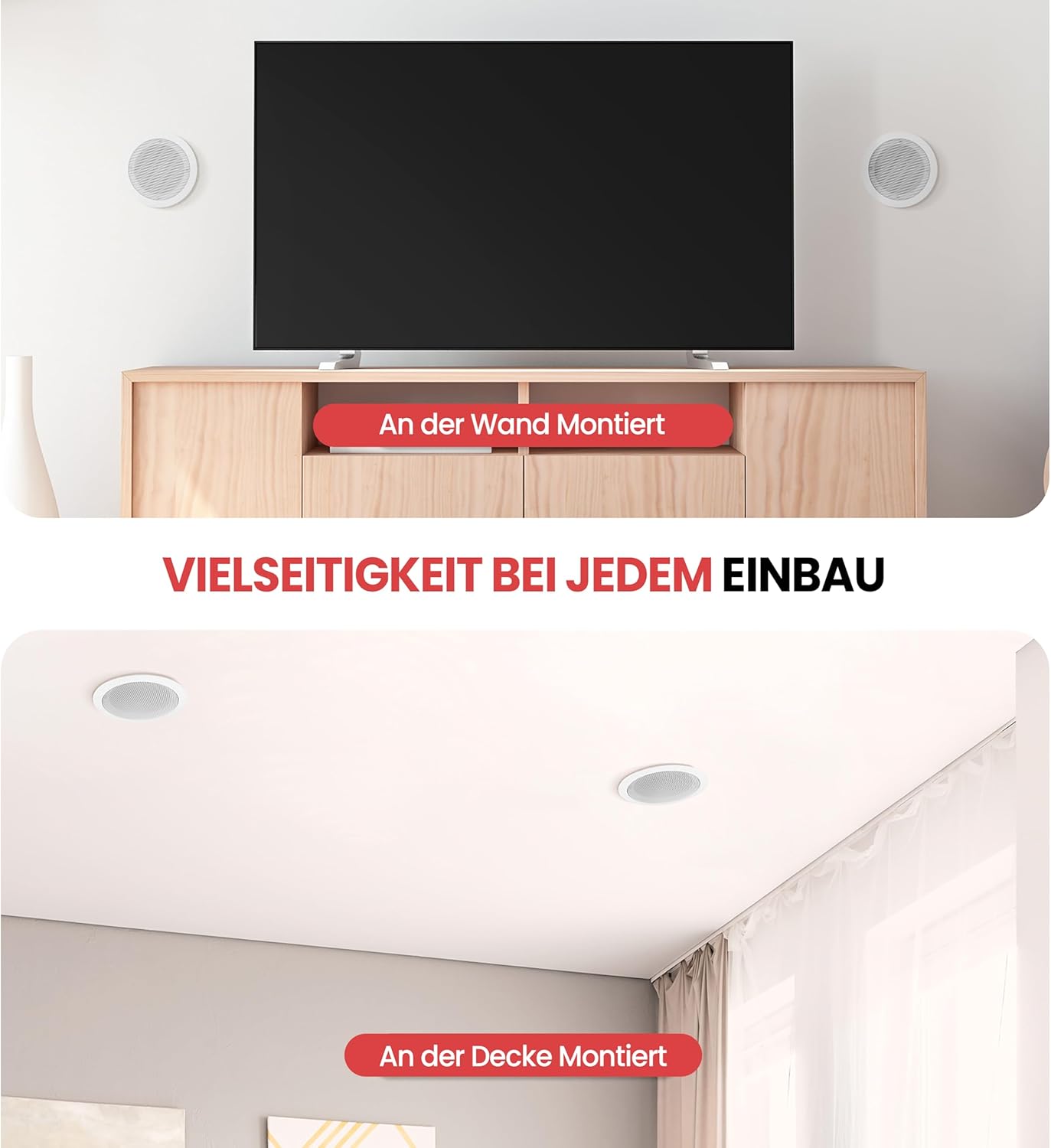 • Подземен дизайн: чифт високоговорители Midas с вграден монтаж за лесен и удобен монтаж в стената/тавана.