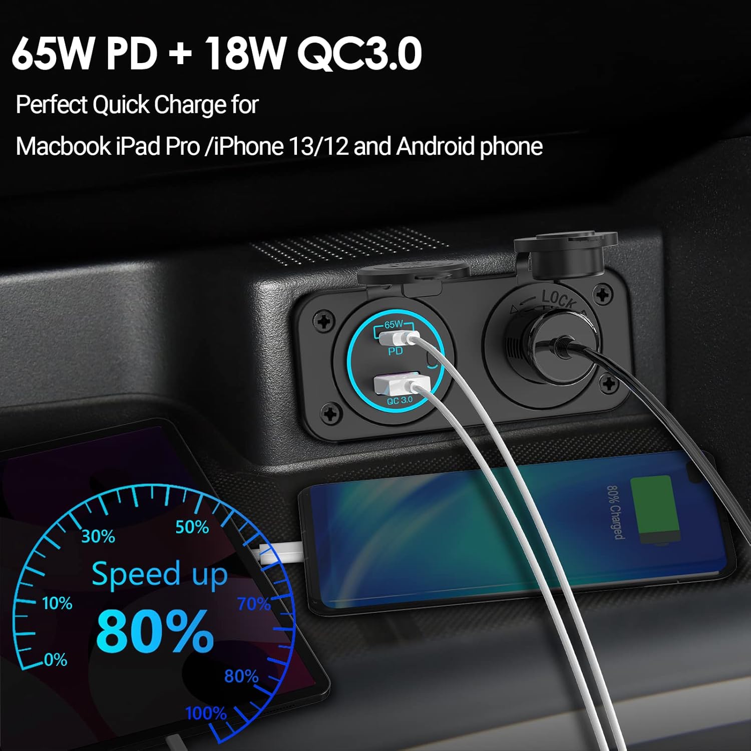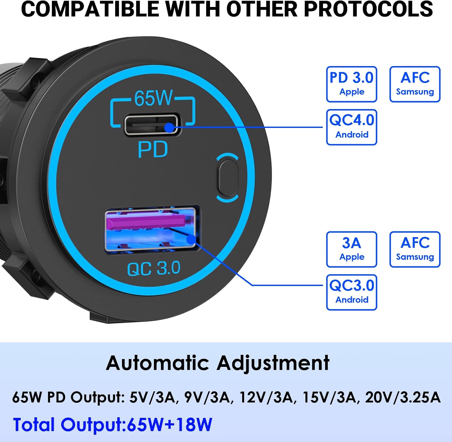 Тази USB инсталационна база е по-дълга от другите, което означава, че е оборудвана с интелигентен чип във всяка USB връзка. 2 USB връзки могат бързо да зареждат вашите устройства едновременно. Общата мощност от 83W работи перфектно с всички ваши USB-C мобилни телефони, таблети, лаптопи и комутатори.