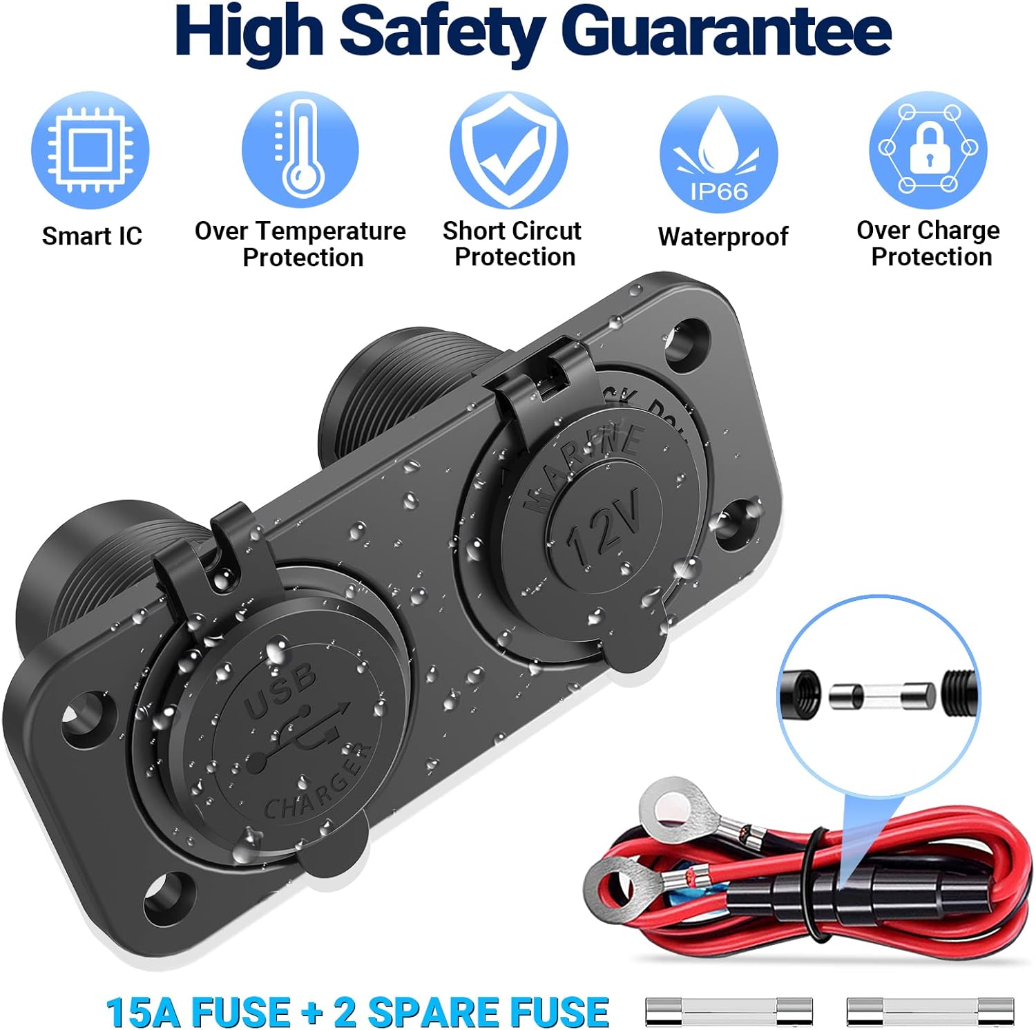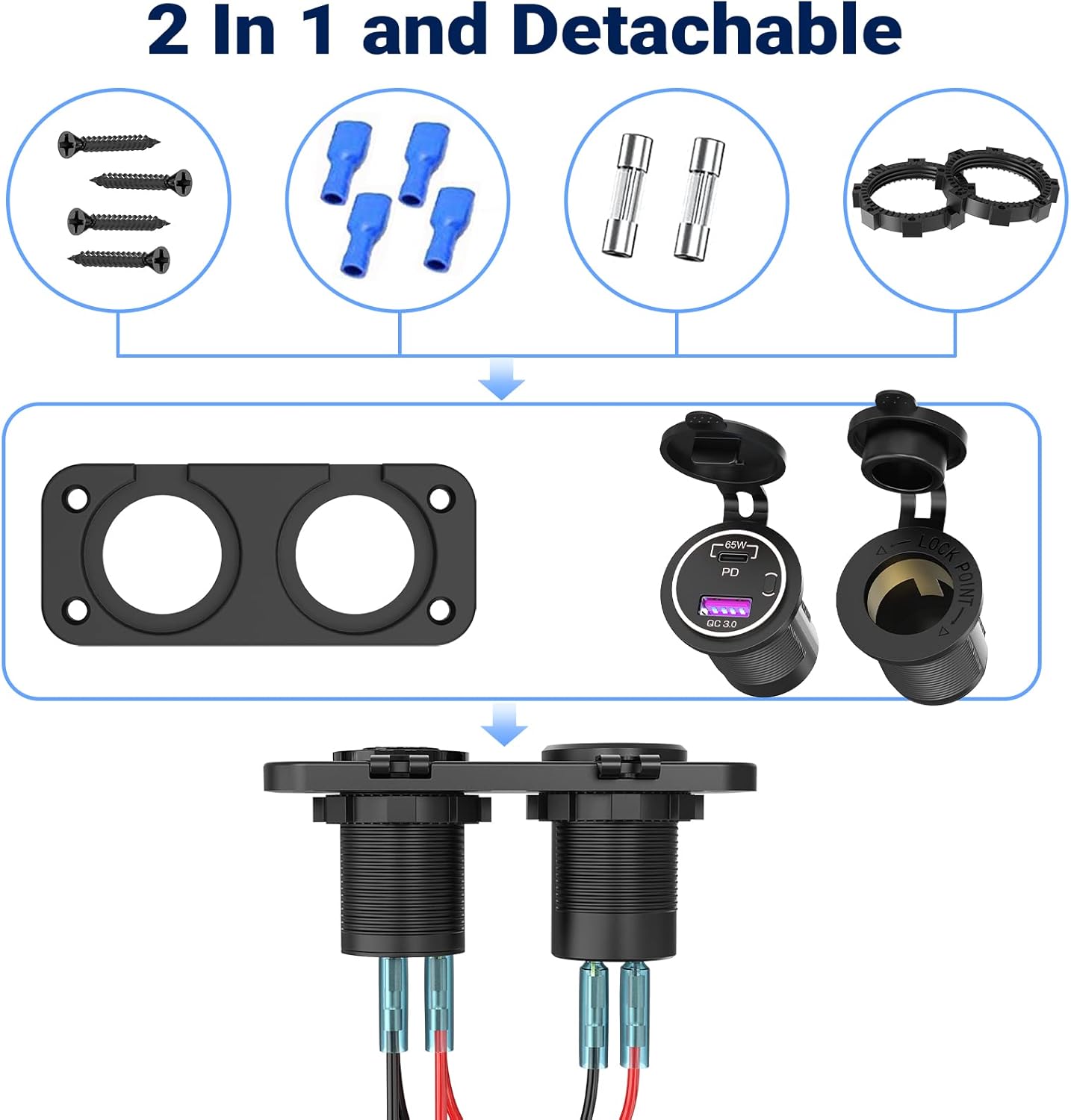 1 * PD 3.0 + QC 3.0 USB гнездо; 1 * 60 см кабел с два 10A предпазителя; 2* резервна защита 10 A
