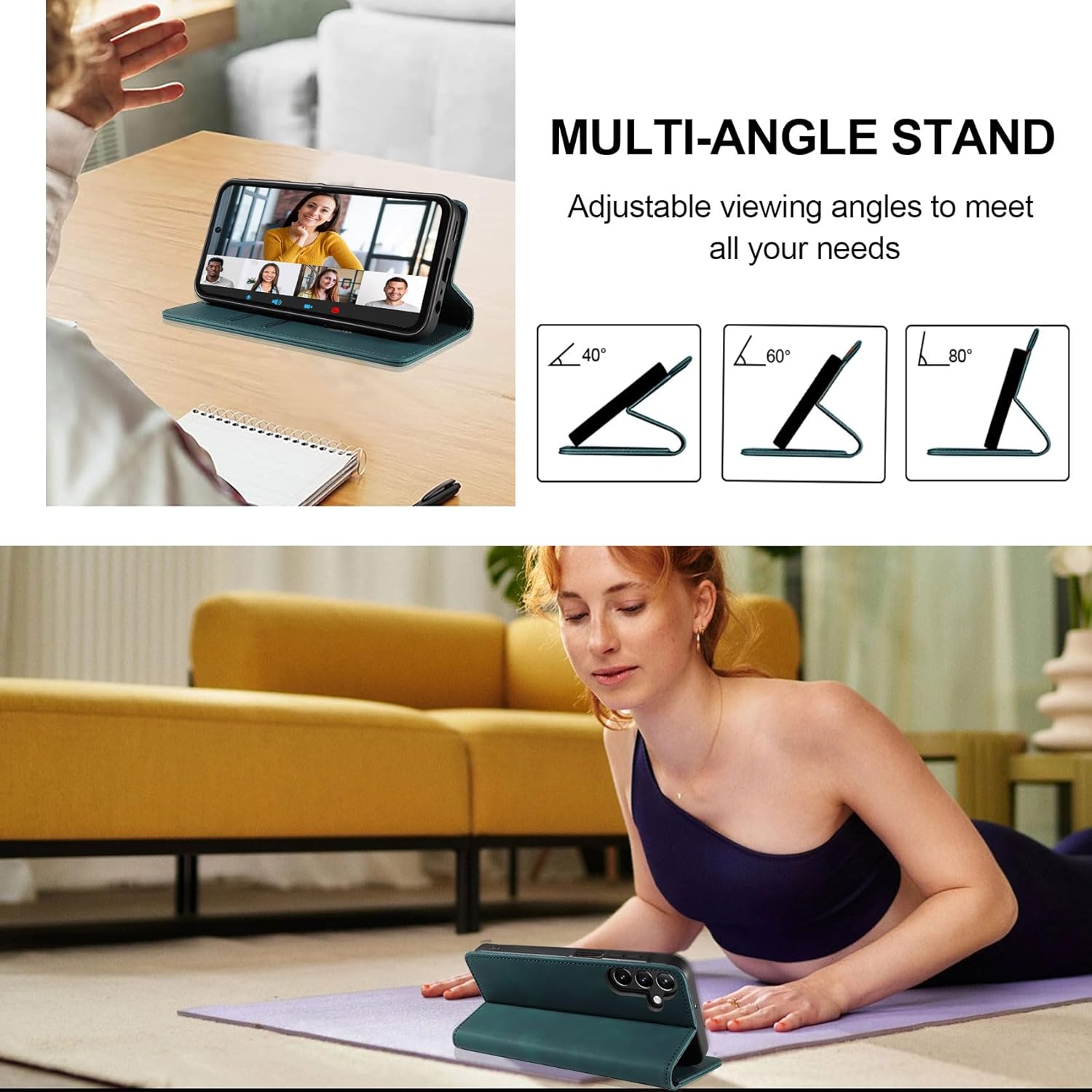 • Магнитно закопчаване и функция на стойка: флип калъфът, оборудван с четири мощни магнита, абсорбира и се затваря автоматично, със силна адсорбционна сила и не се отваря лесно, като ефективно предотвратява падането на карти. Флип калъфът за мобилен телефон Samsung A56 / A36 с регулируема стойка, идеален за гледане на видеоклипове, слушане на музика или сърфиране в интернет.