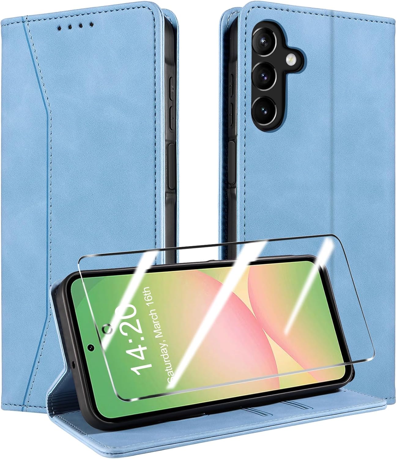 QHOHQ калъф за мобилен телефон за Samsung Galaxy A56 / A36 5G, калъф със закалено стъкло, първокласен защитен калъф от кожа, RFID блокиране, магнитен сгъваем калъф-чанта, многофункционален, удароустойчив и устойчив на светлина