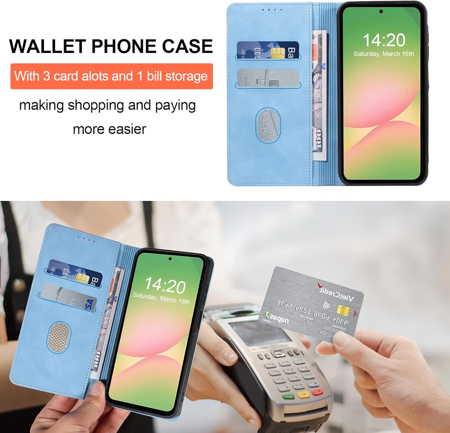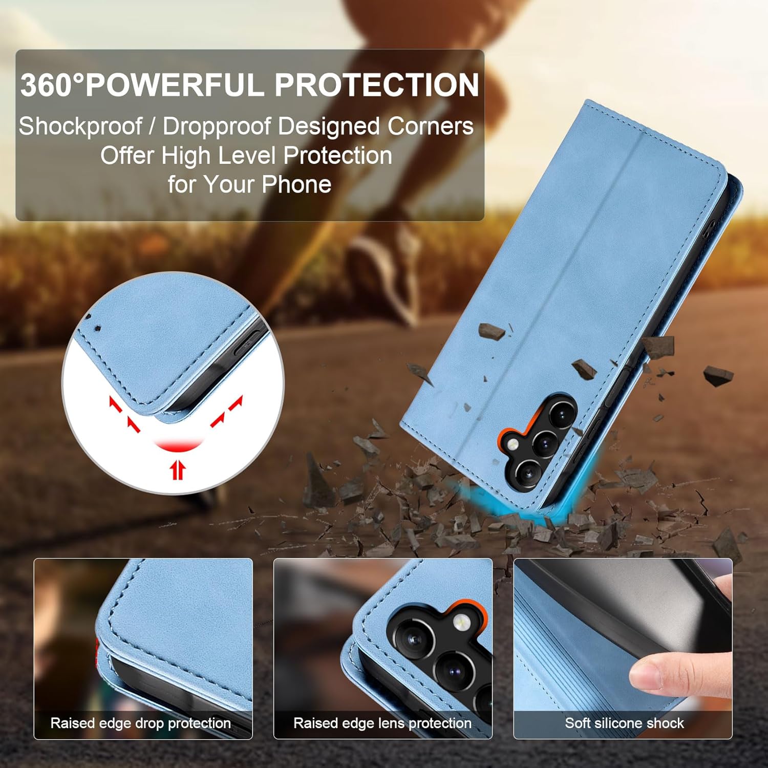 • Висококачествена изкуствена кожа: Калъфът за Samsung A56 / A36 е ръчно изработен от супер издръжлива изкуствена кожа, а вътрешната обвивка е от TPU. Той е удароустойчив и осигурява максимална защита от замърсявания, удари и драскотини. Освен това е приятен на допир и има удобен захват.