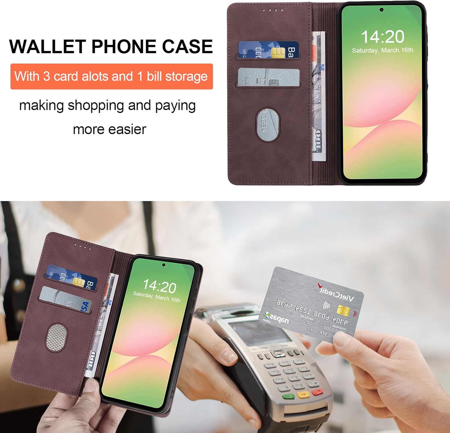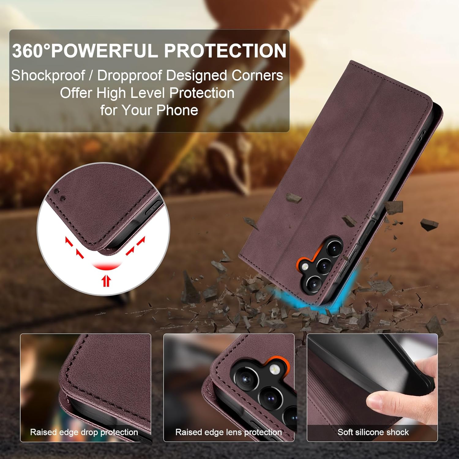 • Висококачествена изкуствена кожа: Калъфът за Samsung A56 / A36 е ръчно изработен от супер издръжлива изкуствена кожа, а вътрешната обвивка е от TPU. Той е удароустойчив и осигурява максимална защита от замърсявания, удари и драскотини. Освен това е приятен на допир и има удобен захват.