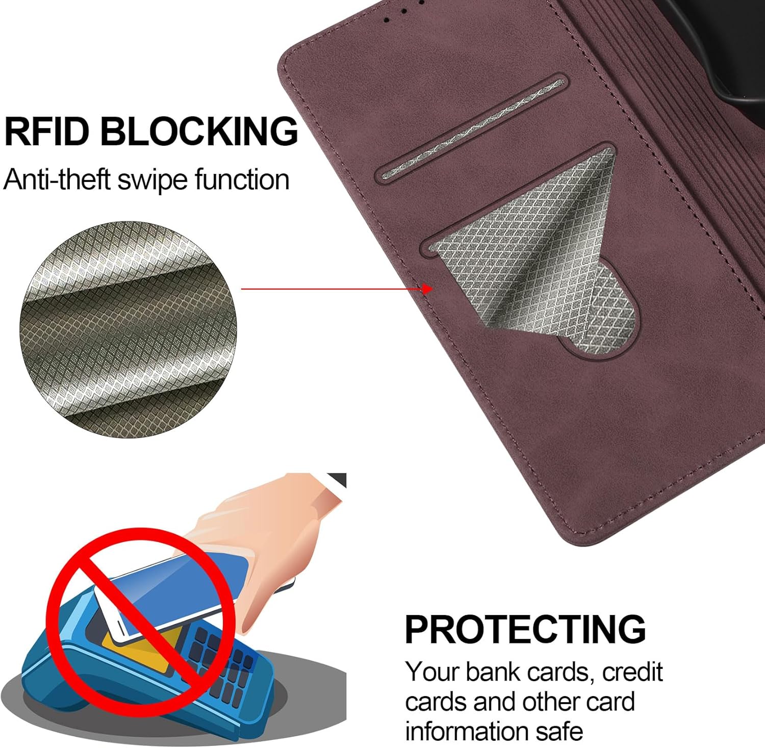 • Стил на портфейл и функция за защита срещу кражба: Подбрани екраниращи материали, изработени с технология за радиочестотна идентификация (съкращения: RFID), за да предпазят вашата банкова карта, кредитна карта и друга информация за картата от кражба. Калъф за мобилен телефон тип портфейл с 2 слота за карти и 1 допълнително отделение за пари, този кожен калъф е перфектната комбинация от калъф за мобилен телефон и портфейл. С него можете лесно да транспортирате ежедневните си вещи.