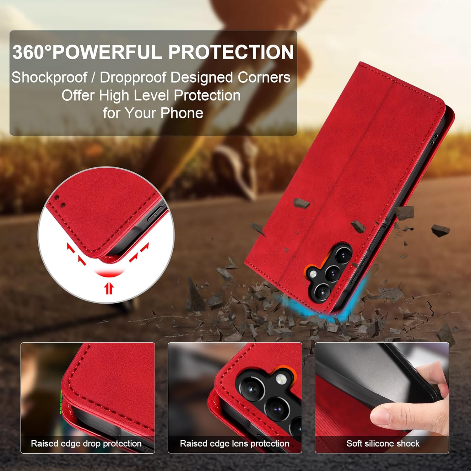 • Висококачествена изкуствена кожа: Калъфът за Samsung A56 / A36 е ръчно изработен от супер издръжлива изкуствена кожа, а вътрешната обвивка е от TPU. Той е удароустойчив и осигурява максимална защита от замърсявания, удари и драскотини. Освен това е приятен на допир и има удобен захват.
