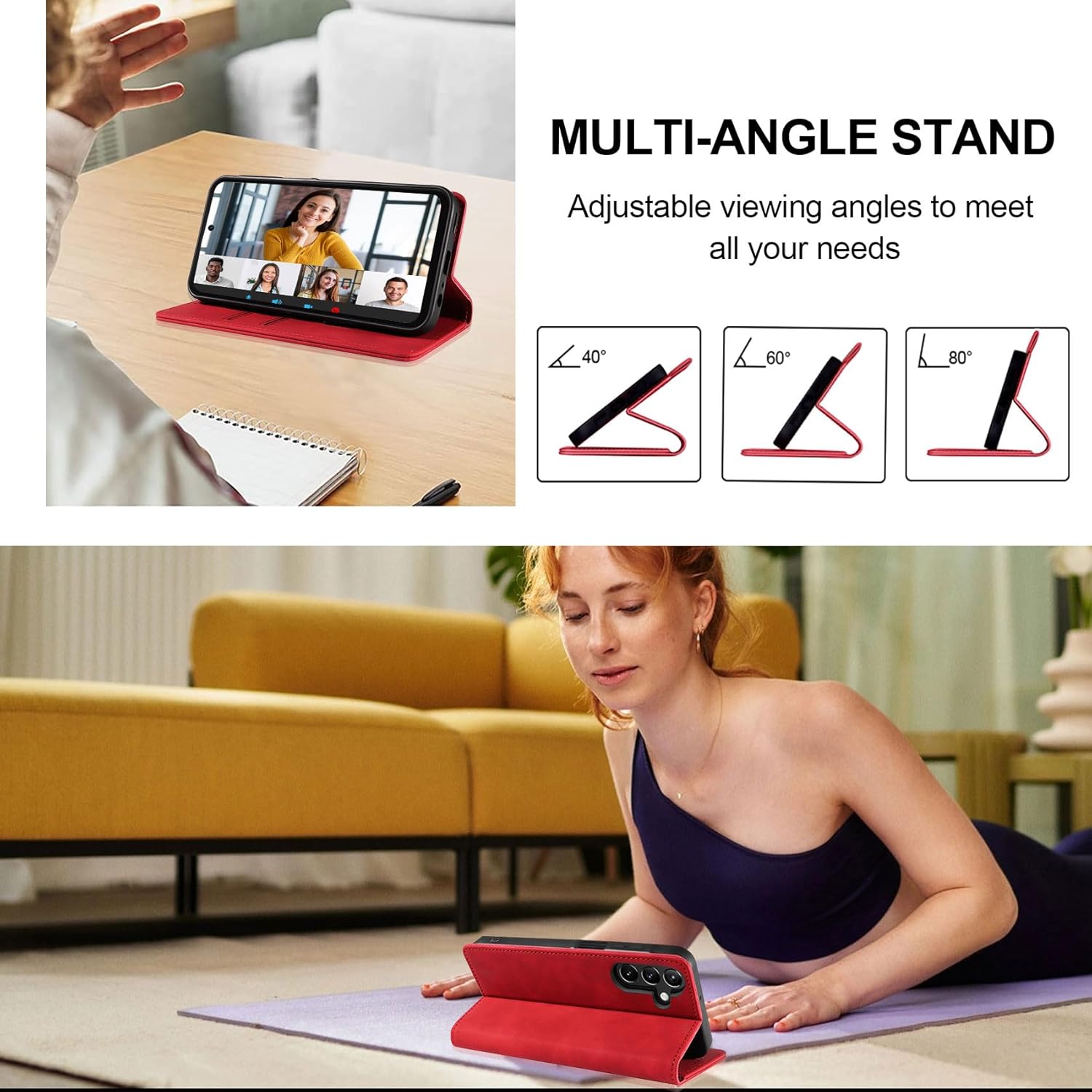 • Магнитно закопчаване и функция на стойка: флип калъфът, оборудван с четири мощни магнита, абсорбира и се затваря автоматично, със силна адсорбционна сила и не се отваря лесно, като ефективно предотвратява падането на карти. Флип калъфът за мобилен телефон Samsung A56 / A36 с регулируема стойка, идеален за гледане на видеоклипове, слушане на музика или сърфиране в интернет.