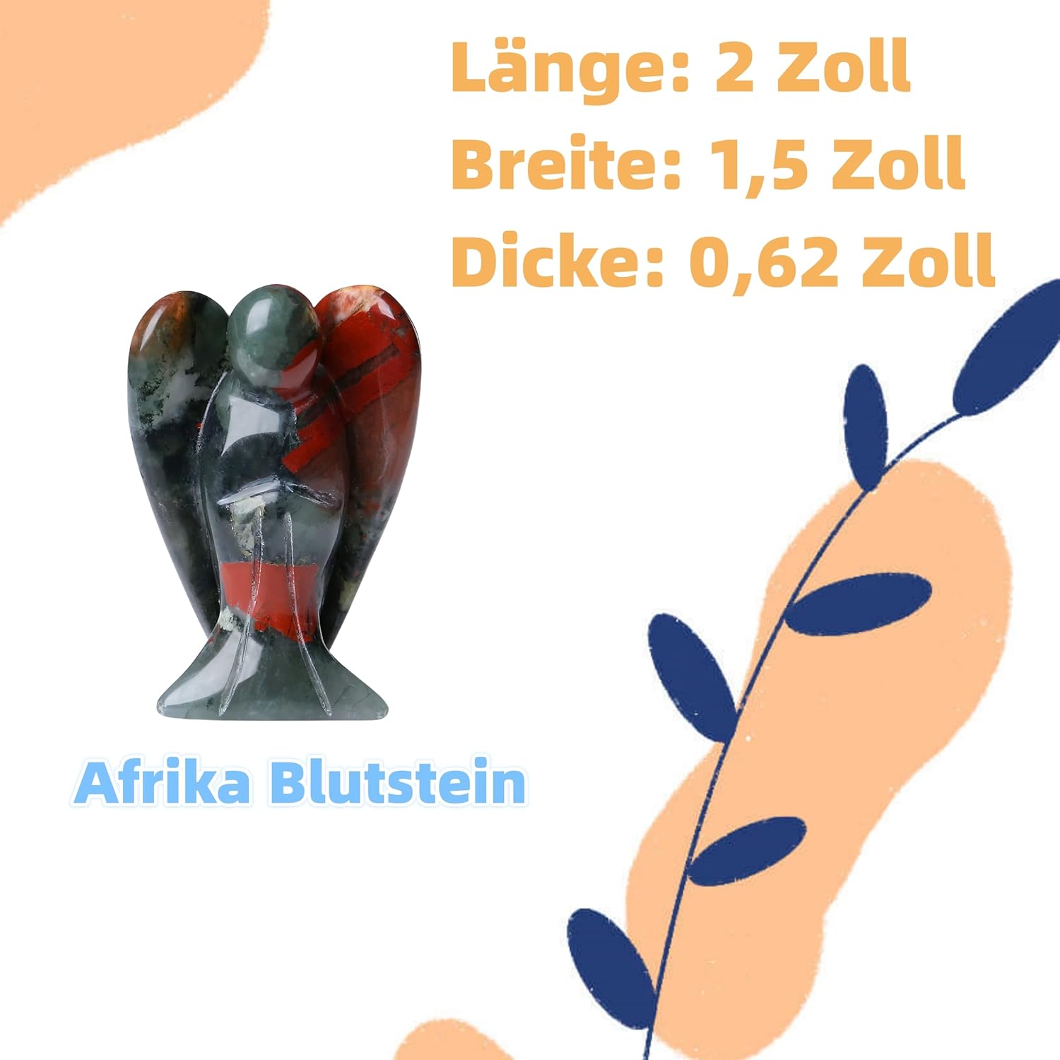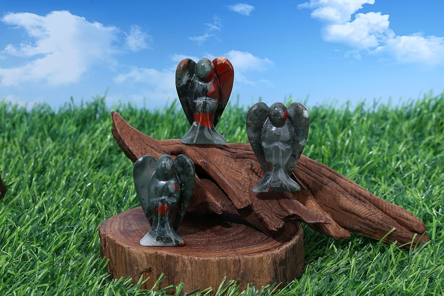 QINJIEJIE Ангелска фигурка на ангел-пазител, африкански кръвен камък, естествени кристали, скъпоценни камъни, лечебен кристал, статуетка на пазител, рейки декорация, подаръци