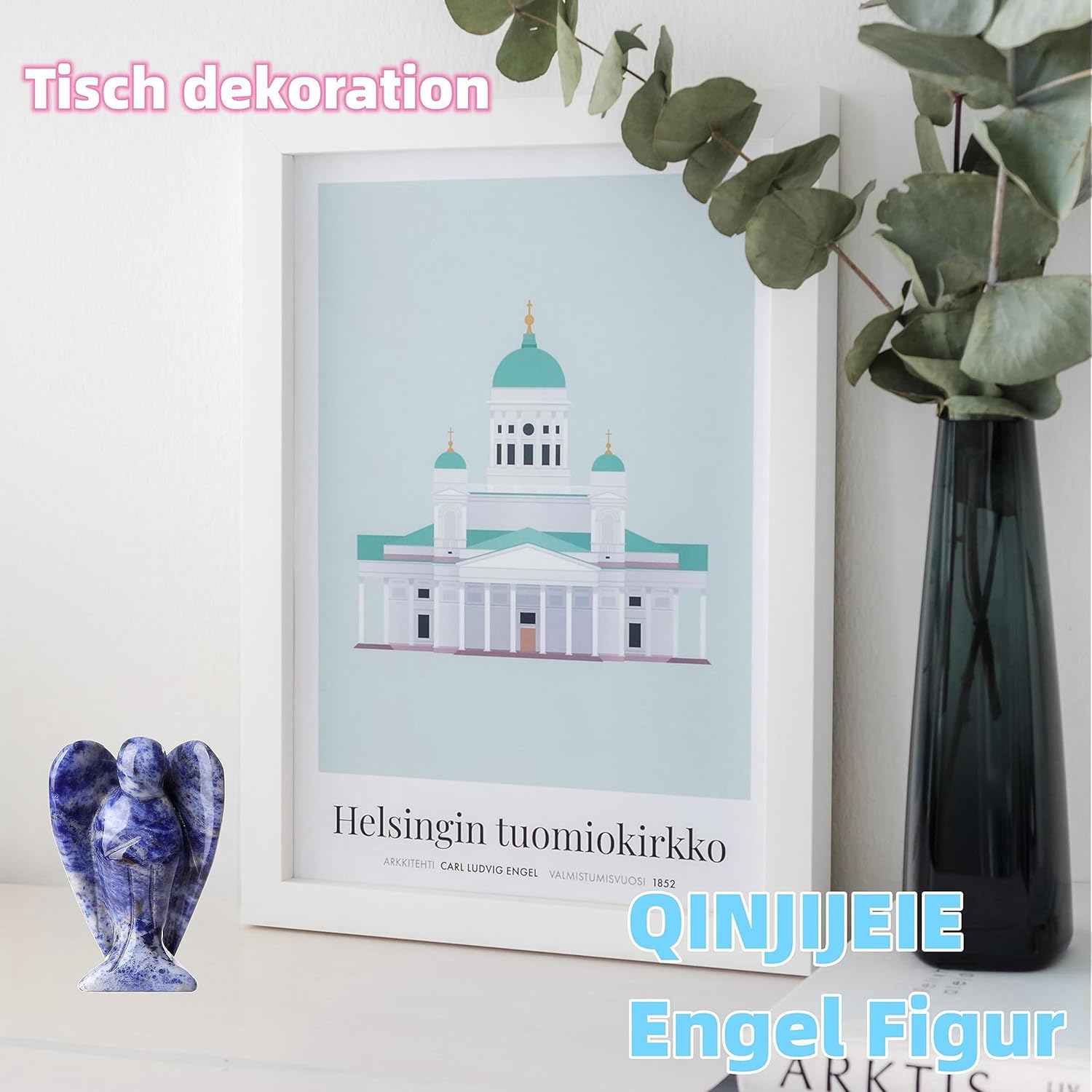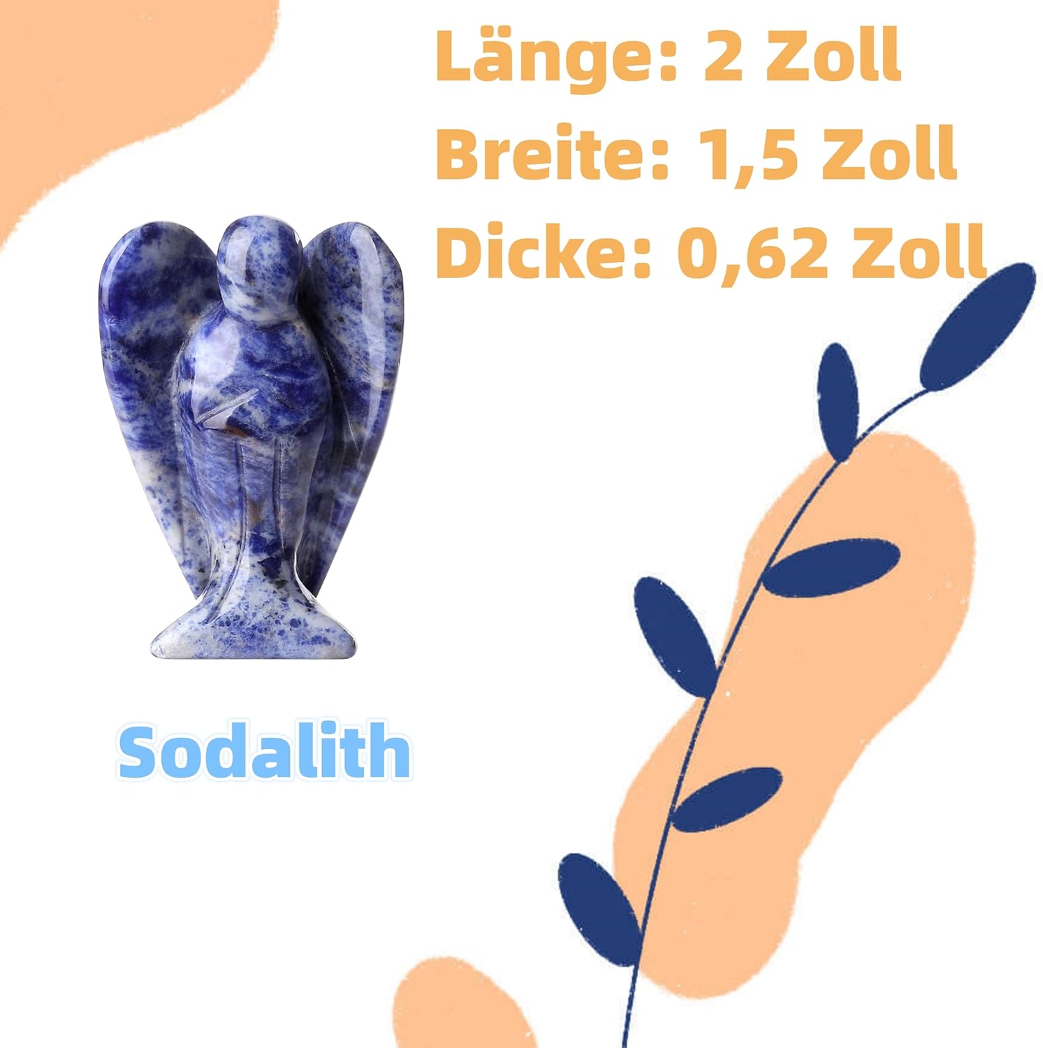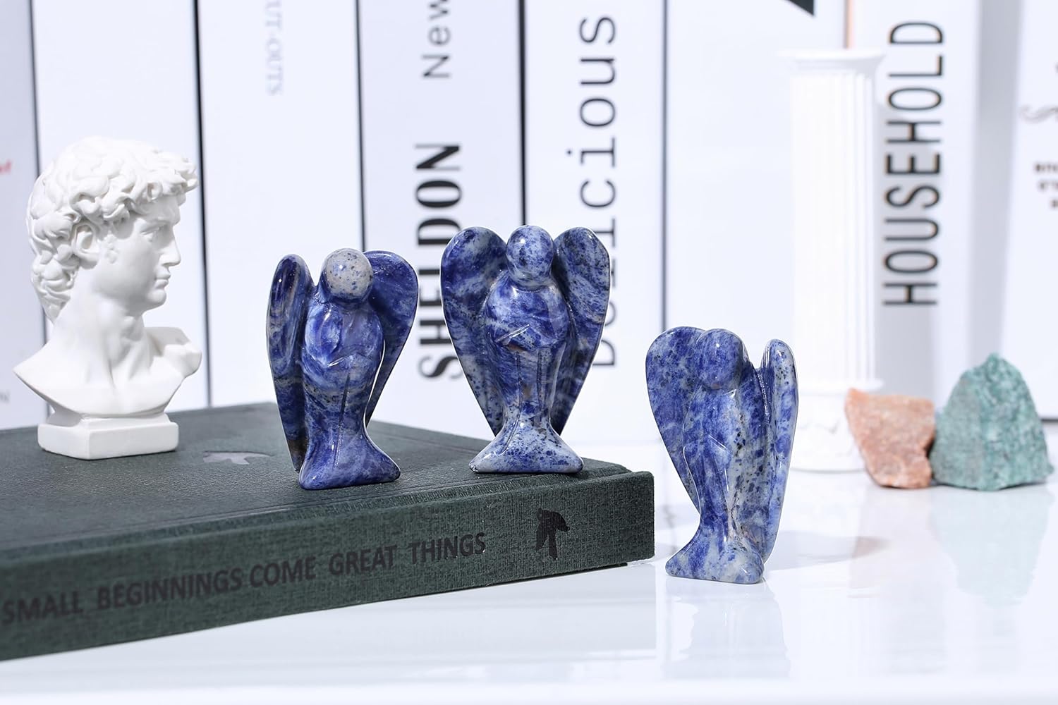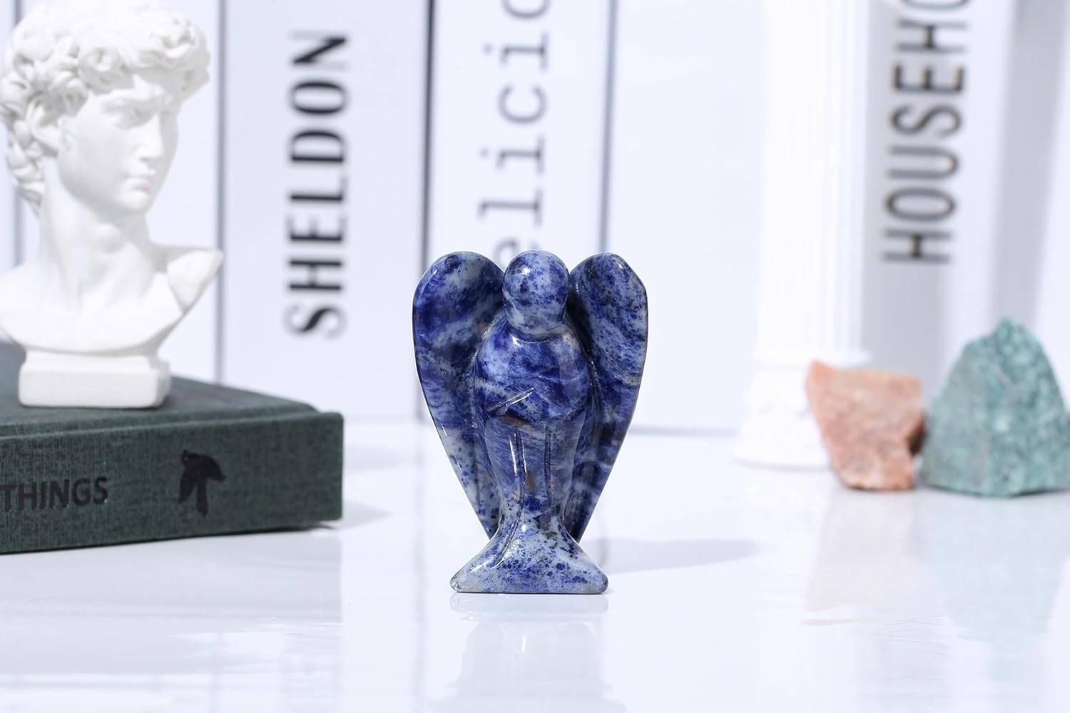 QINJIEJIE Ангелска фигурка на ангел-пазител Содалит - Естествени кристали, скъпоценни камъни, лечебен кристал, статуетка на пазител - Рейки ангелска декорация, подаръци