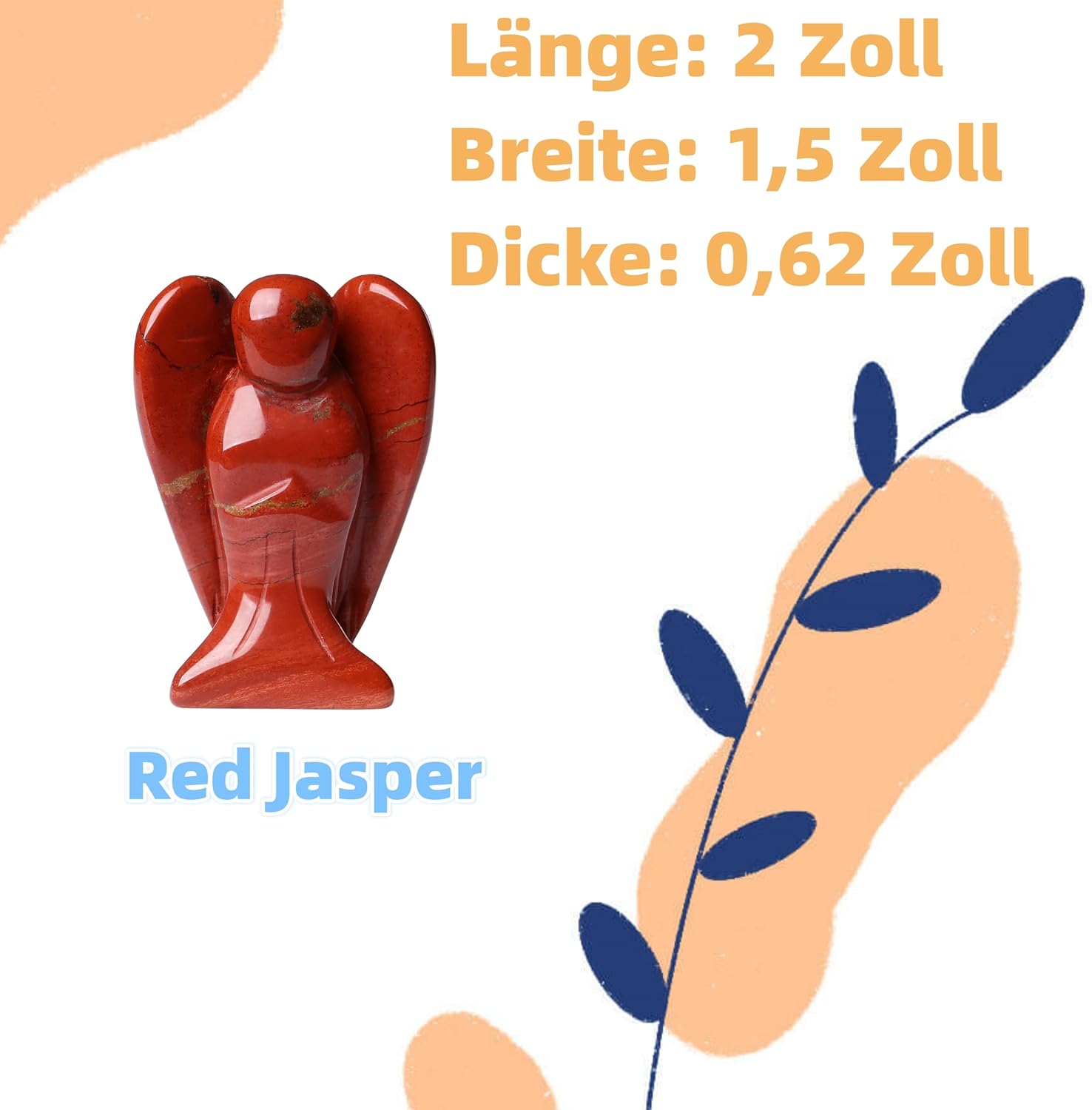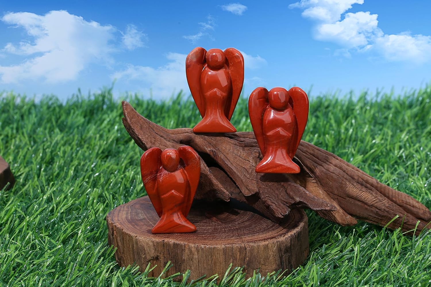 QINJIEJIE Ангелска фигурка от червен яспис Ангел-пазител Естествени кристали Скъпоценни камъни Лечебен кристален пазител Статуя Рейки Ангелска фигурка Ангелска декорация Подаръци