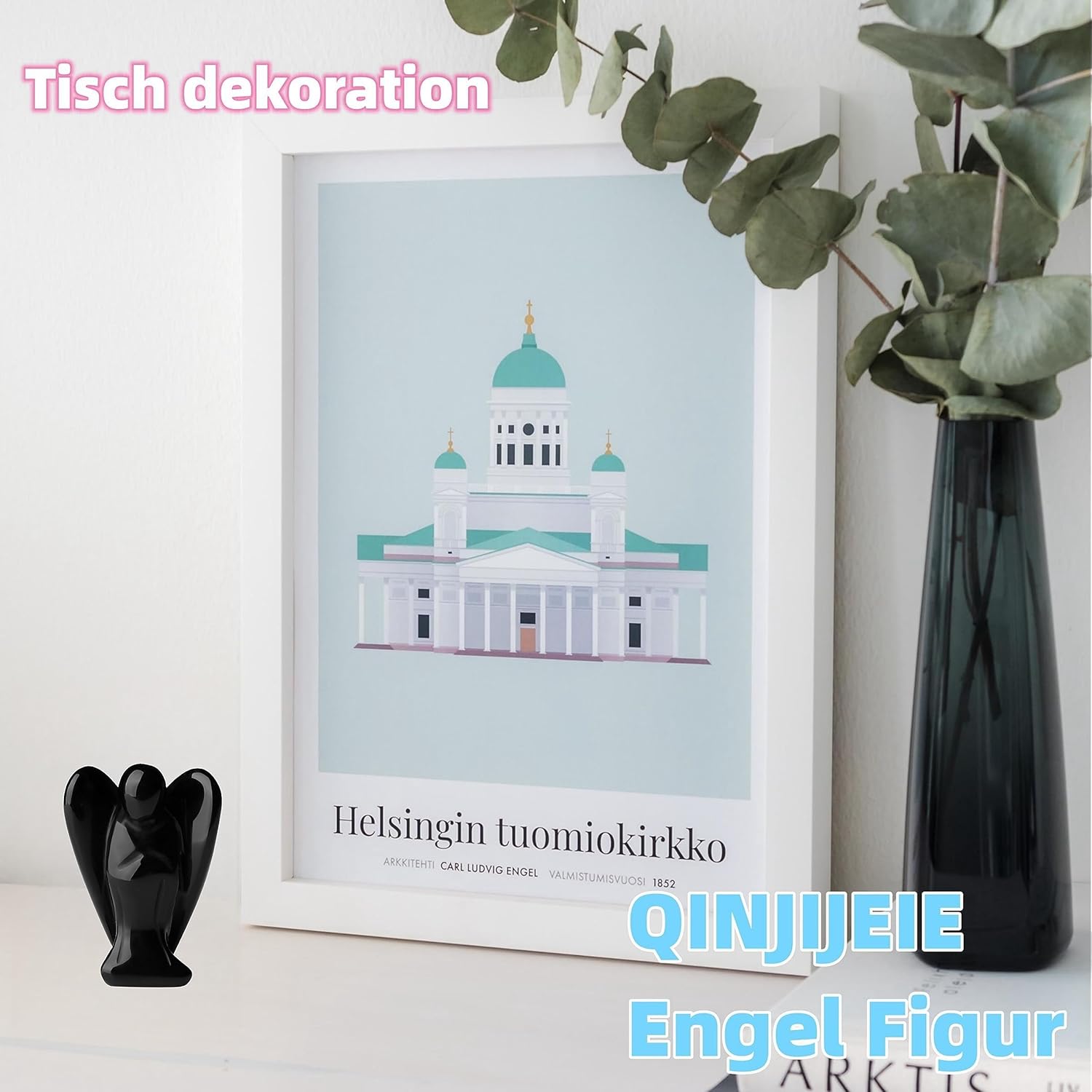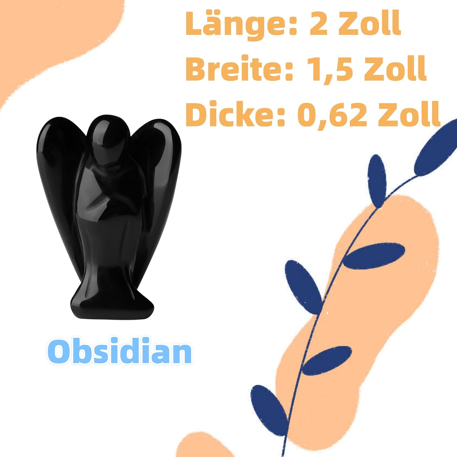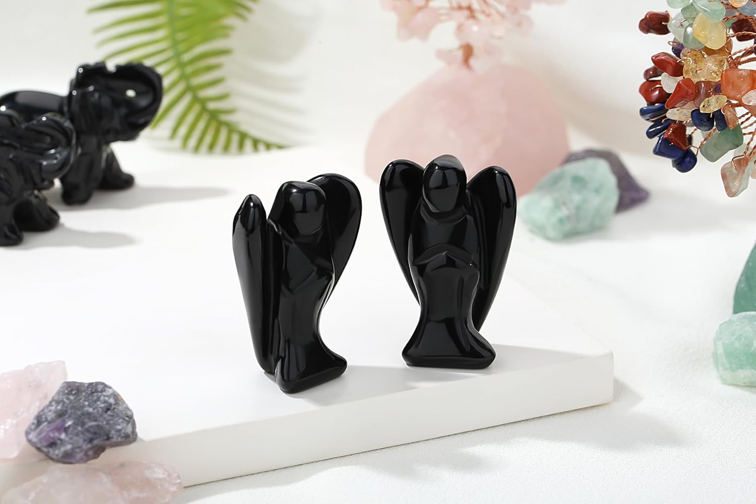 QINJIEJIE Ангелска фигурка от обсидиан, ангел-пазител, естествени кристали, скъпоценни камъни, лечебен кристал, статуя на ангел-пазител, рейки фигурка, ангелска декорация, подаръци