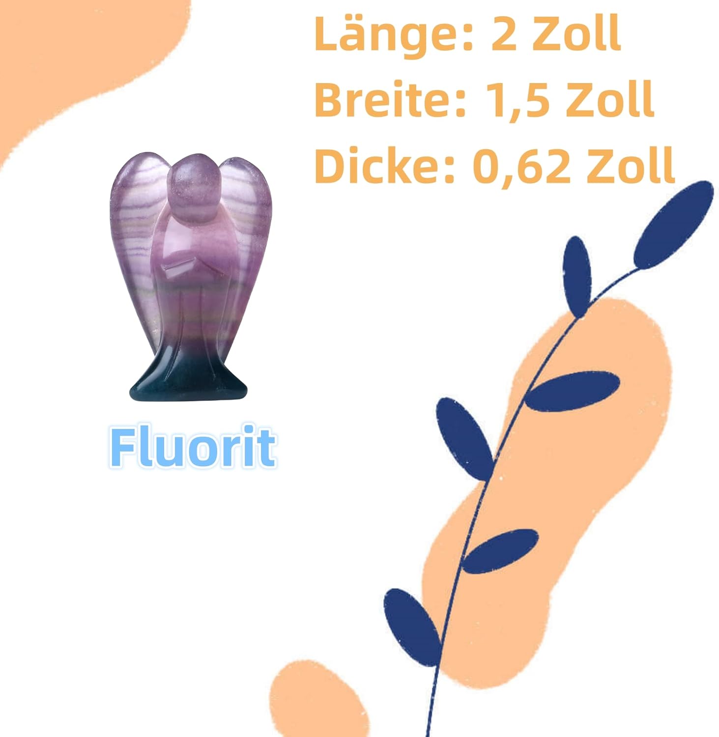 QINJIEJIE Флуоритна фигурка на ангел-пазител, естествени кристали, скъпоценни камъни, лечебен кристал, статуетка на ангел-пазител, рейки фигурка на ангел, декорация, подаръци