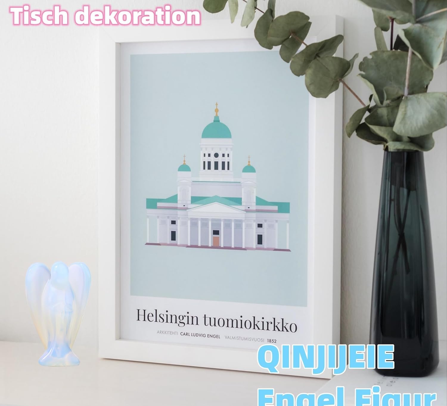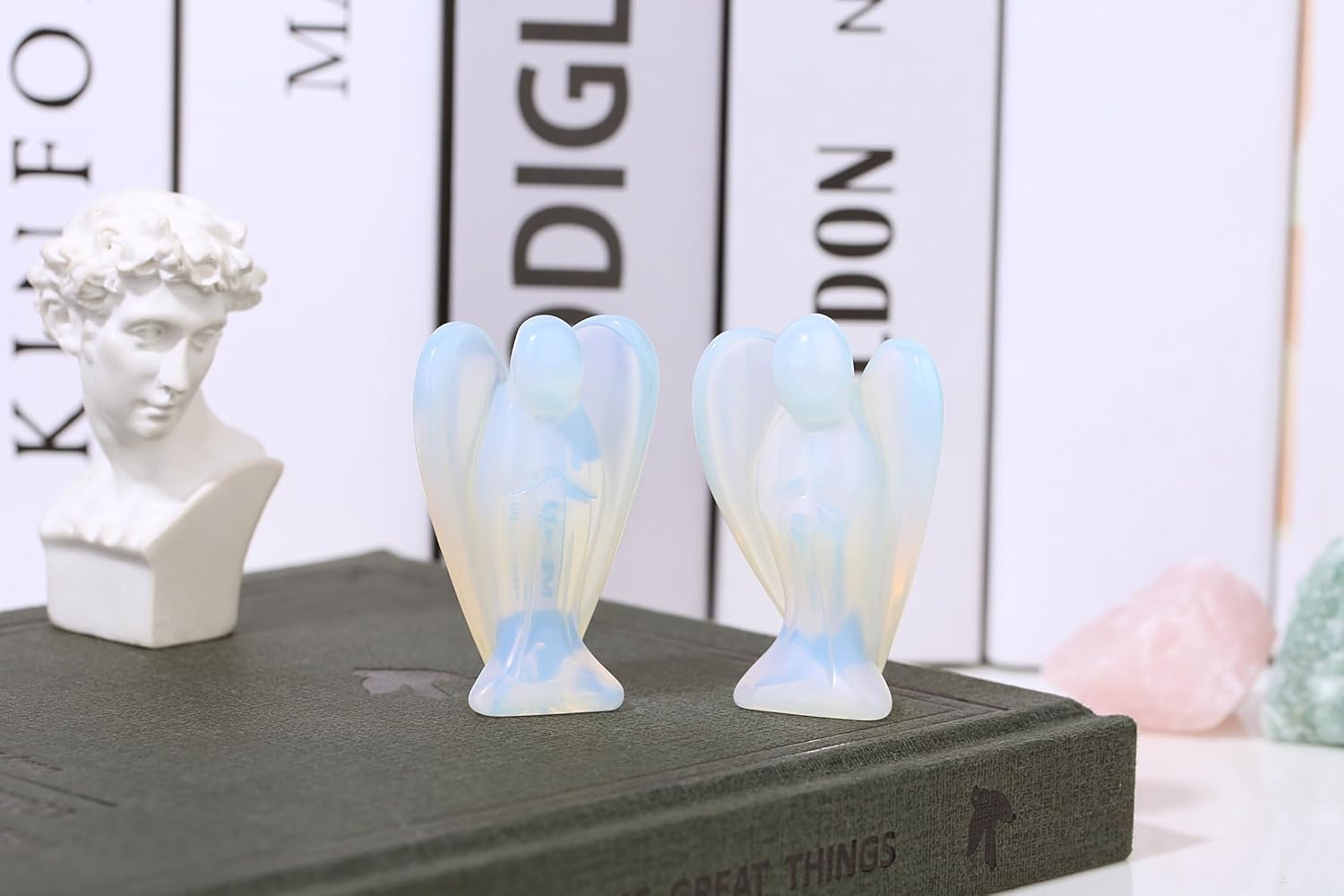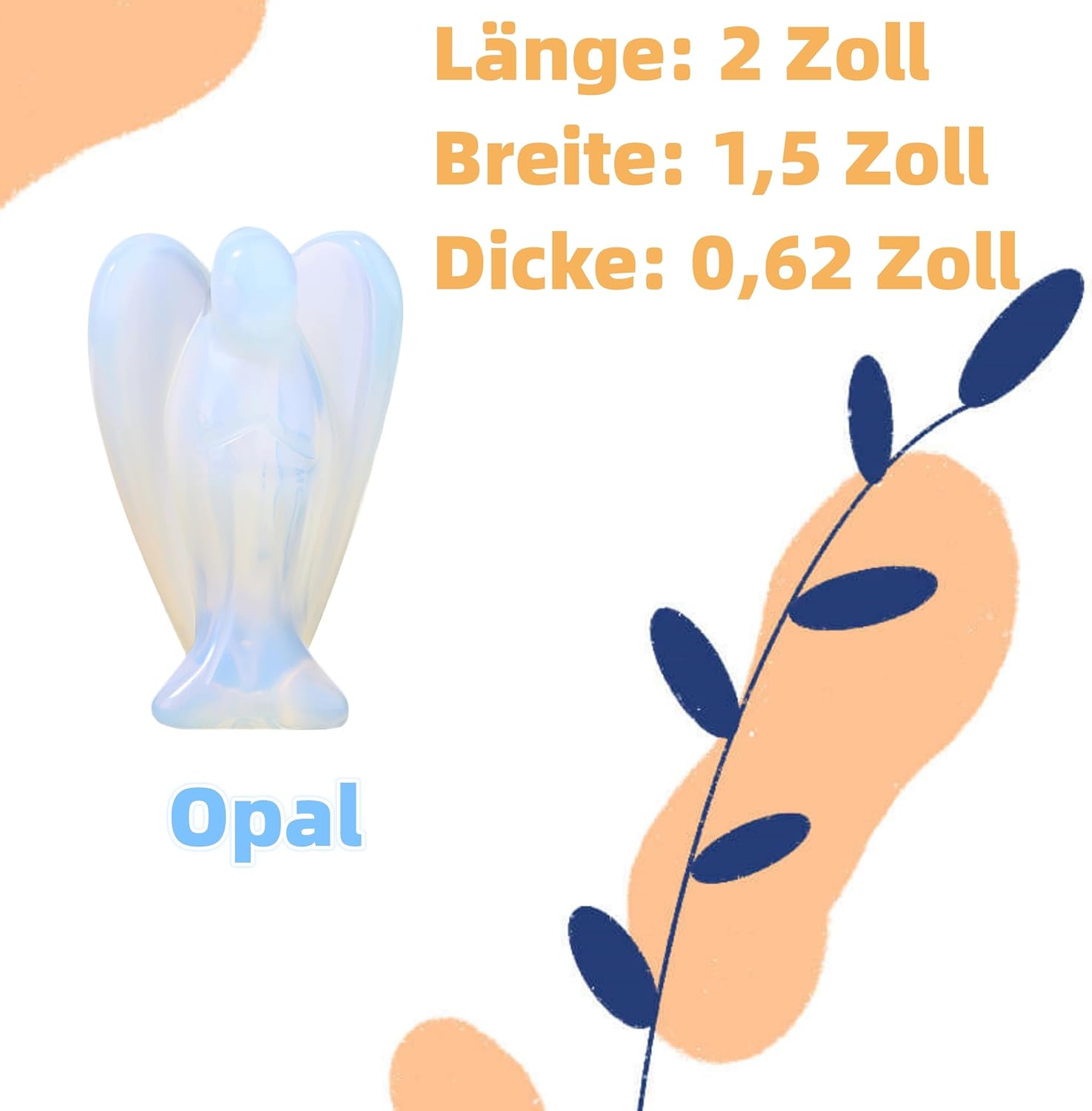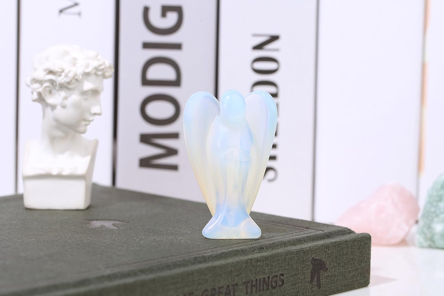 QINJIEJIE Опал Ангел Фигурка Кристали Ангел Пазител Скъпоценни камъни Лечебен Кристал Ангел Пазител Статуя Рейки Фигура Ангел Подаръци