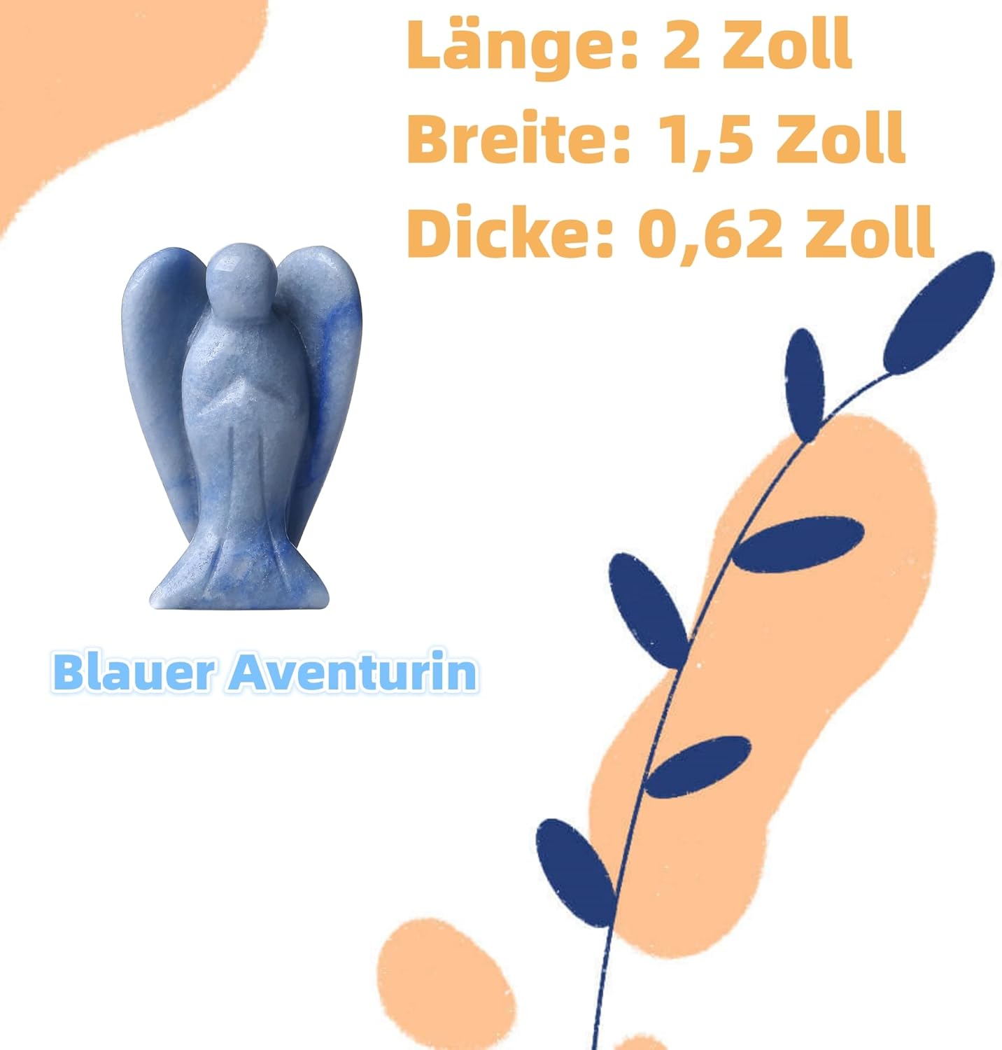 QINJIEJIE Син авантюрин Ангелска фигурка на ангел-пазител Естествени кристали Скъпоценни камъни Лечебен кристал Пазител Статуя Рейки Ангелска фигурка Ангелска декорация Подаръци