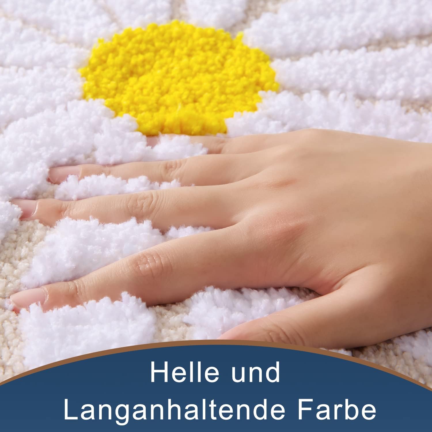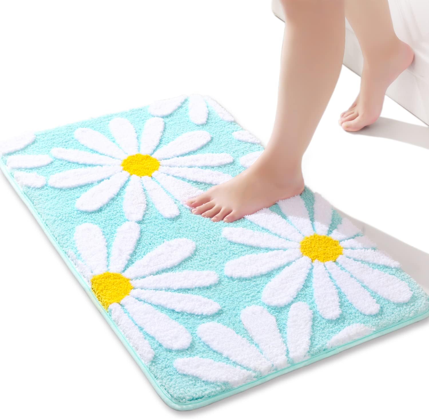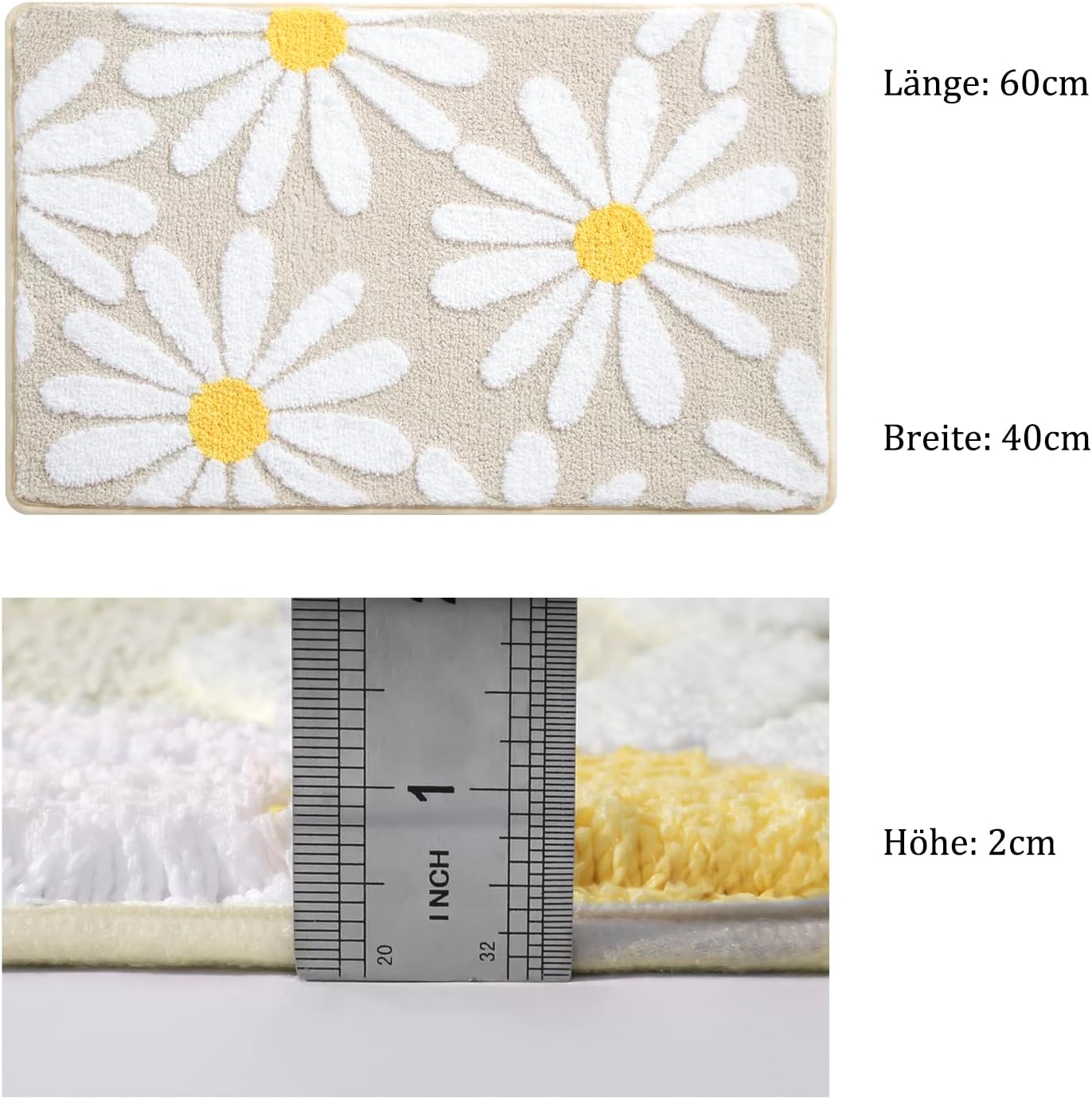 Сладък килим за баня с мотив на маргаритки, с уникален дизайн и ярки цветове, изглежда много красиво и привлекателно, добавя блясък към банята, перфектната комбинация от практичност и декорация.