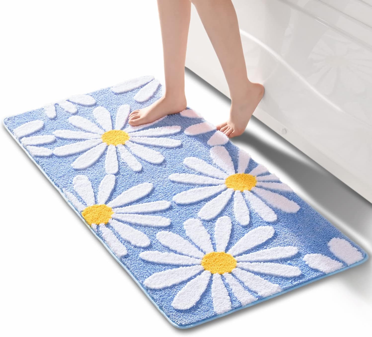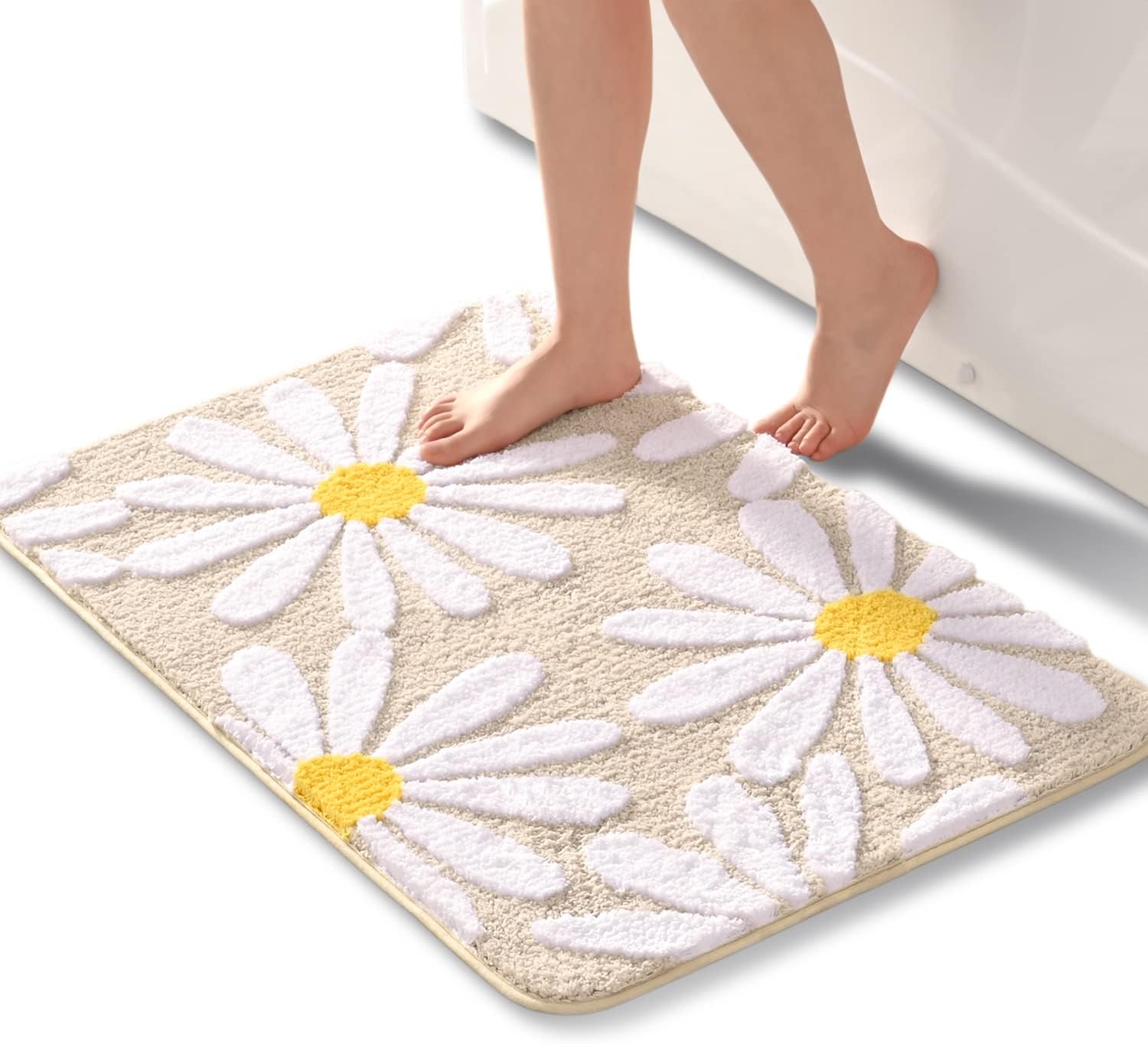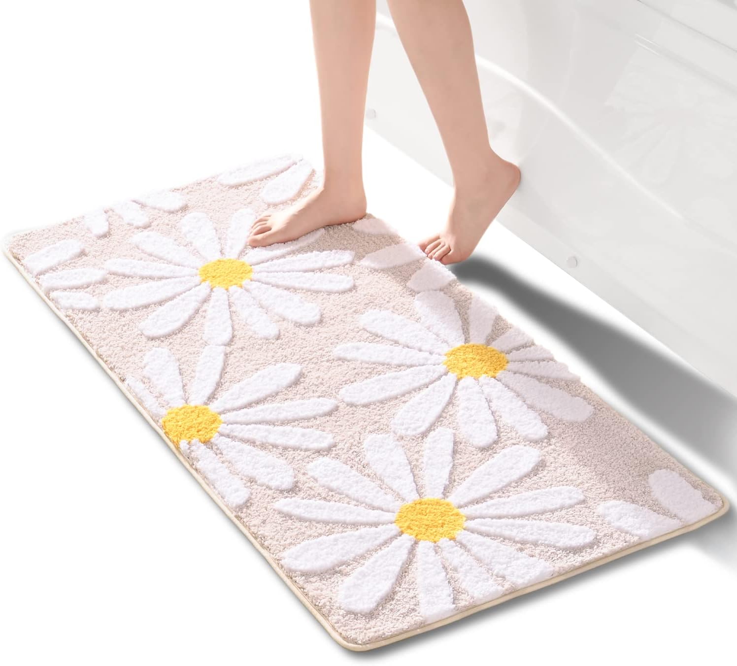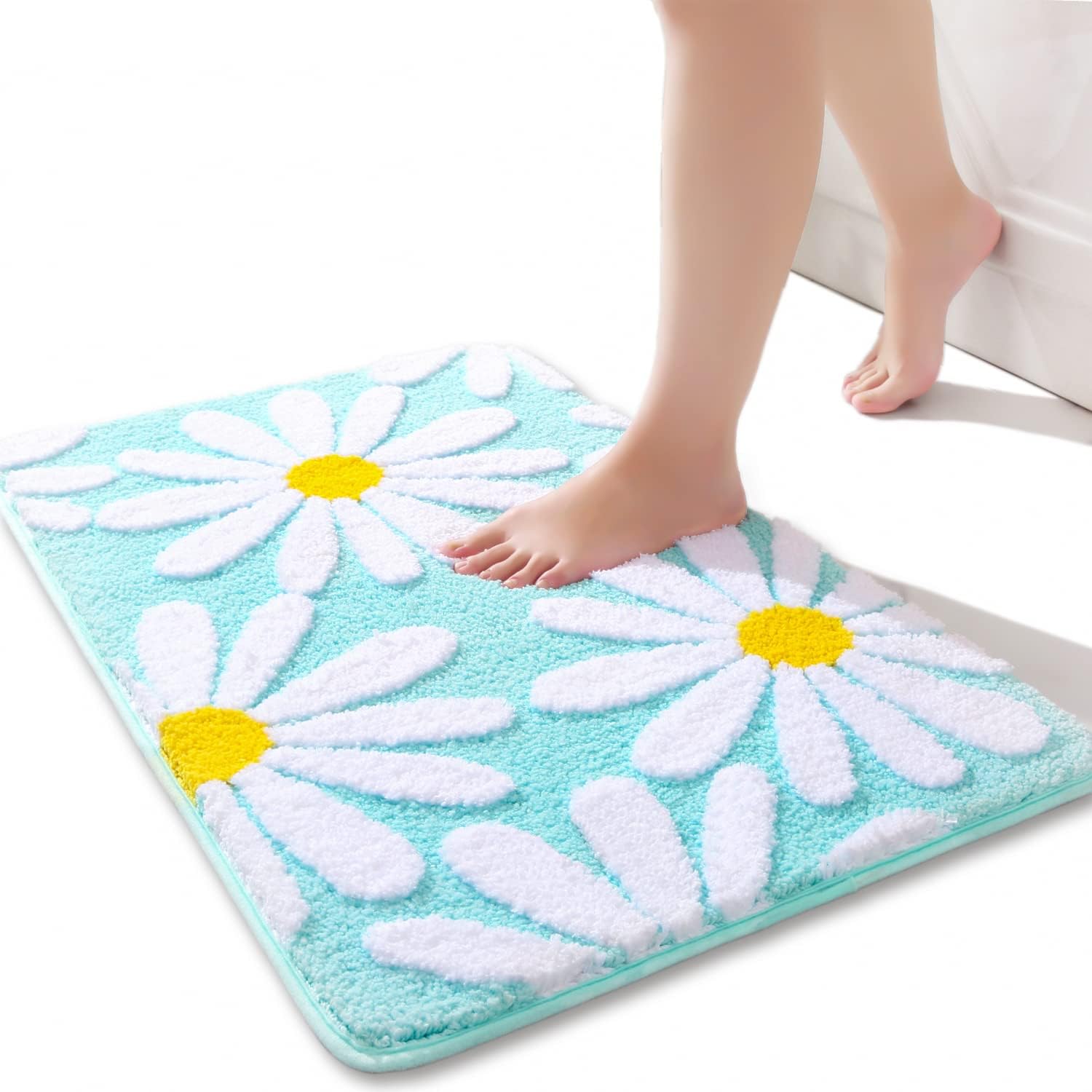 Сладък килим за баня с мотив на маргаритки, с уникален дизайн и ярки цветове, изглежда много красиво и привлекателно, добавя блясък към банята, перфектната комбинация от практичност и декорация.