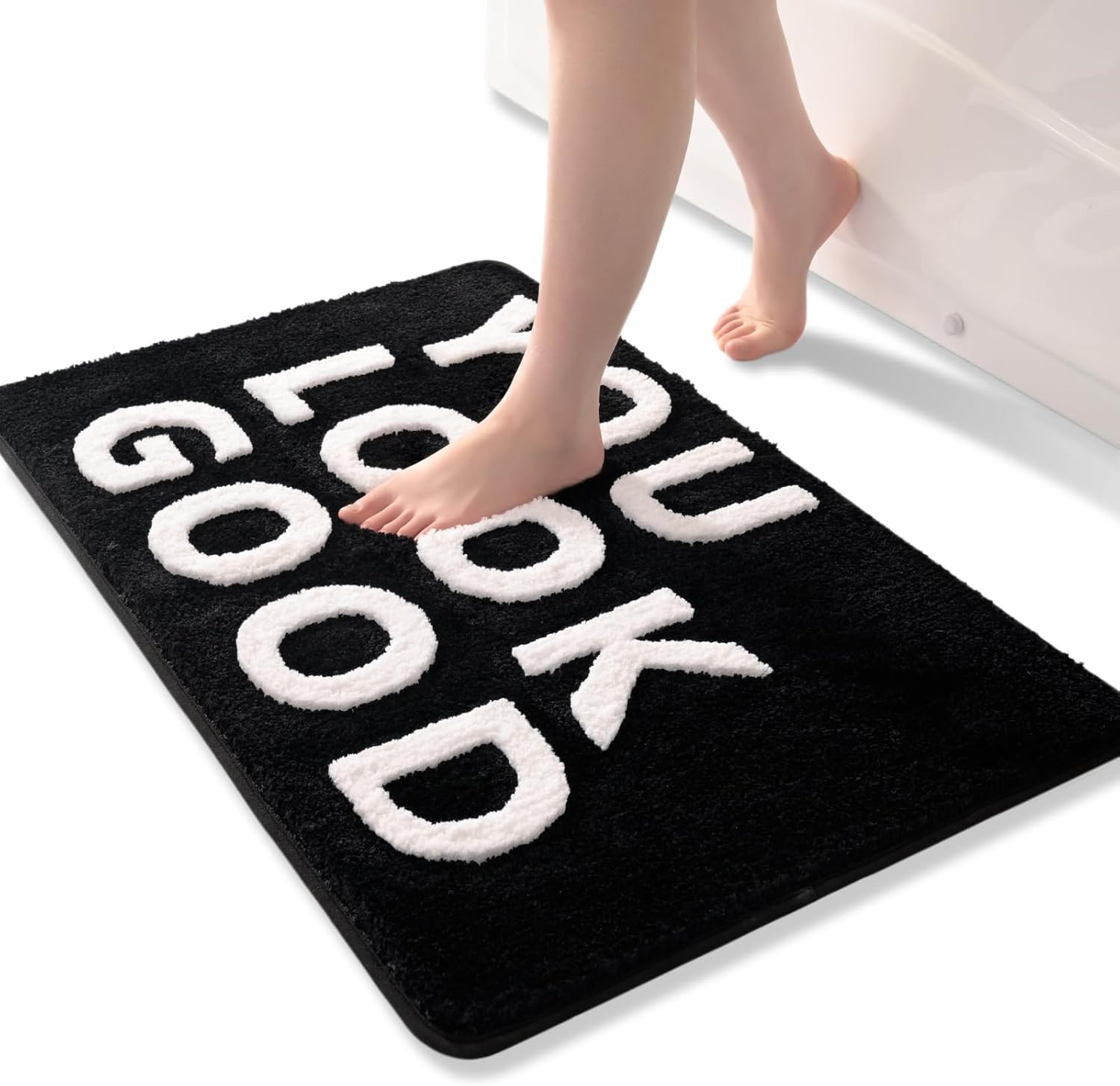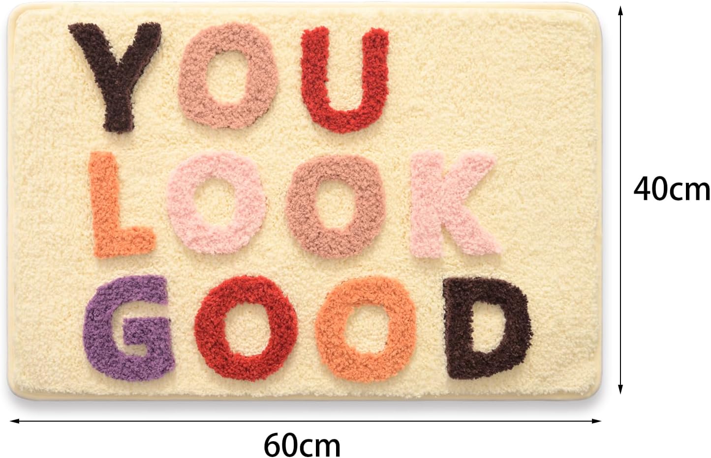 Сладък килим за баня с цветни букви, уникален дизайн и ярки цветове. Изглежда много красив и привлекателен и добавя блясък към банята. Той е перфектната комбинация от функционалност и декорация.