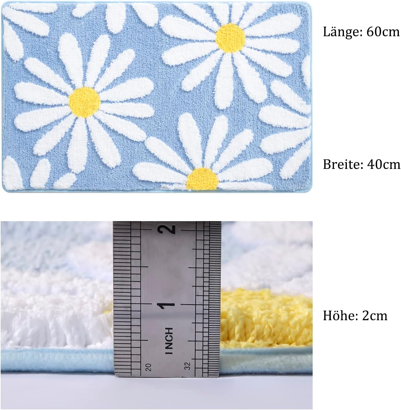 Сладък килим за баня с мотив на маргаритки, с уникален дизайн и ярки цветове, изглежда много красиво и привлекателно, добавя блясък към банята, перфектната комбинация от практичност и декорация.