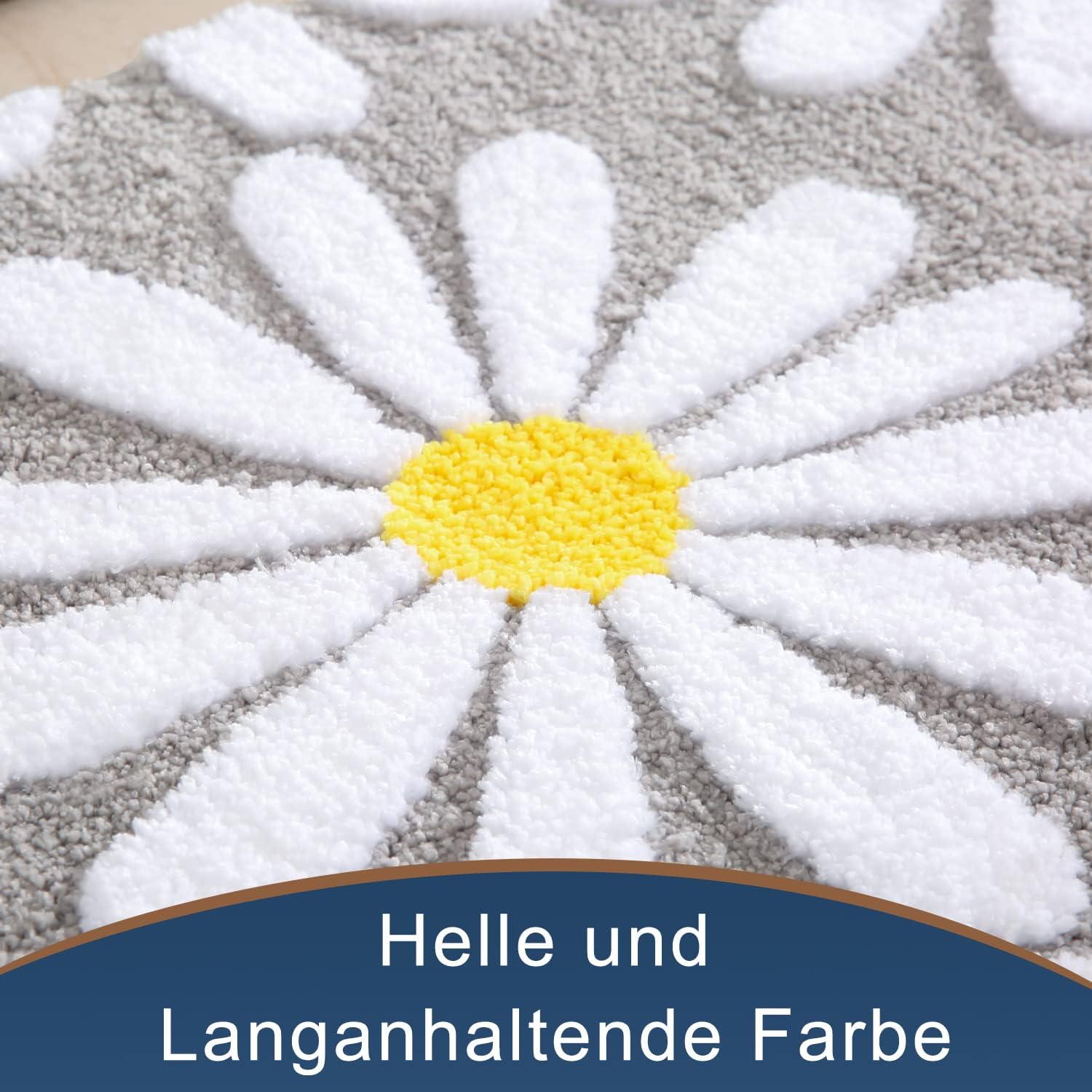 The daisy bath mat is available in pink, blue, green, beige and grey and in sizes 16 x 24 inches and 20 x 32 inches. Choose the right floor mat according to your preferences and needs.