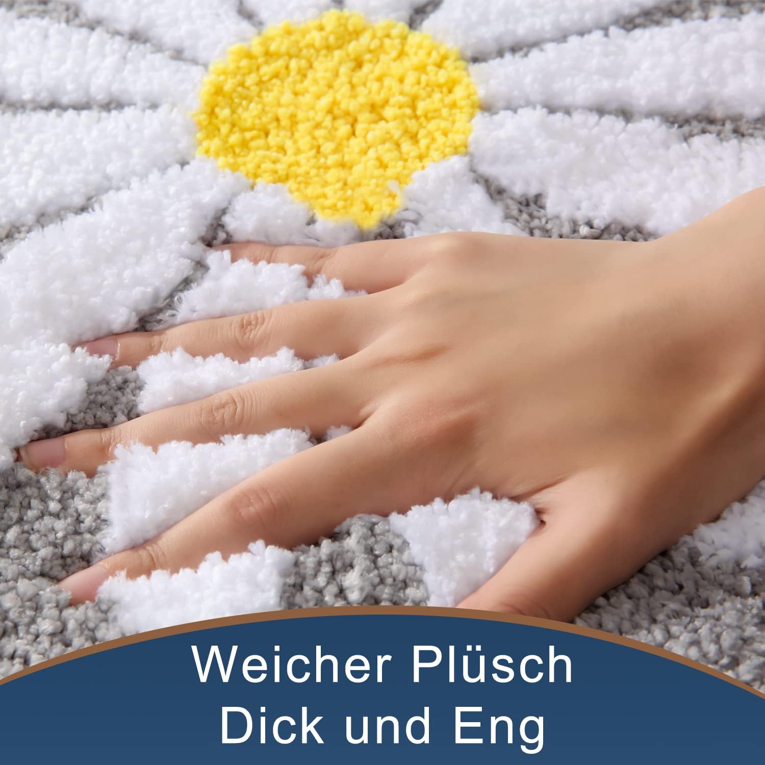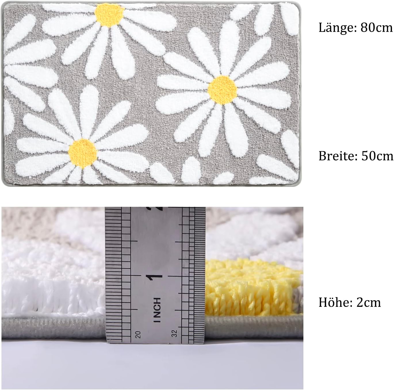 Сладък килим за баня с мотив на маргаритки, с уникален дизайн и ярки цветове, изглежда много красиво и привлекателно, добавя блясък към банята, перфектната комбинация от практичност и декорация.